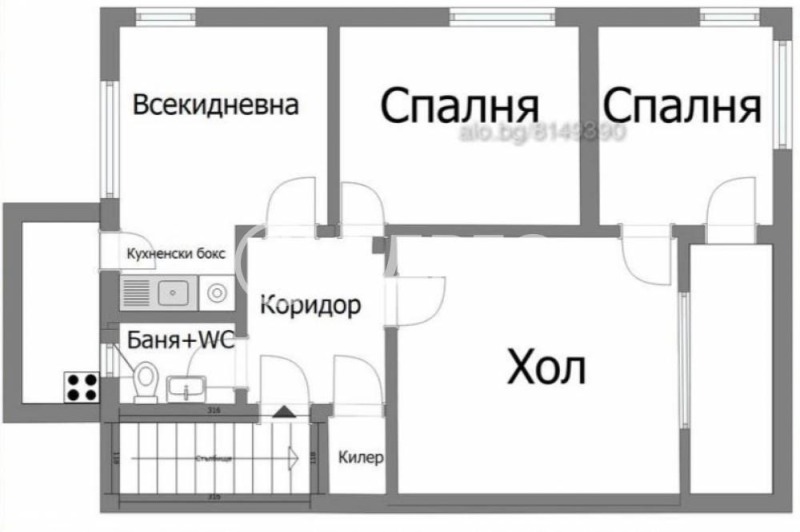 Апартаментът се намира на трети непоследен етаж в тухлена сграда. Сградата не разполага с асансьор