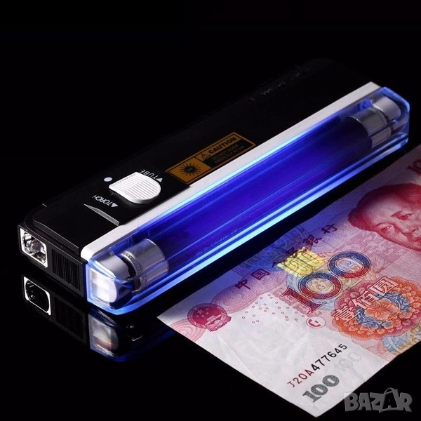 Тагове: uv детектор за фалшиви банкноти, портативен детектор за банкноти, uv лампа за пари, детектор за фалшиви пари, уред за проверка на банкноти, UV фенер за документи