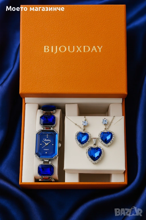 Луксозен дамски комплект със сърцевидни кристали, който съчетава блясък и класа.
