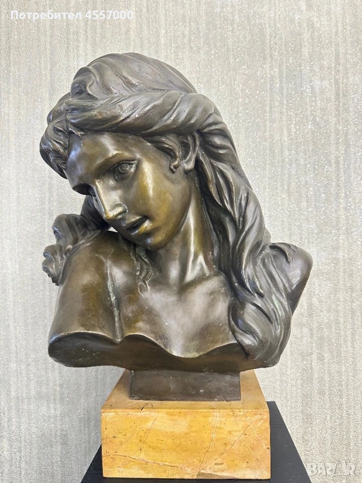 Продавам изключително рядък и впечатляващ антикварен бюст на млада жена, изработен от масивен бронз. Предметът е в стил Арт Нуво (Art Nouveau), датиращ от края на XIX или началото на XX век.