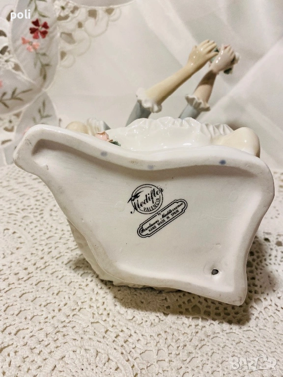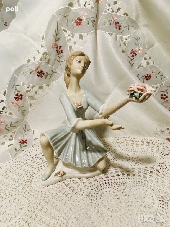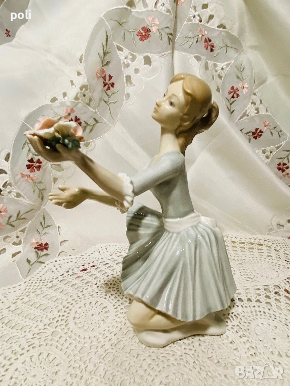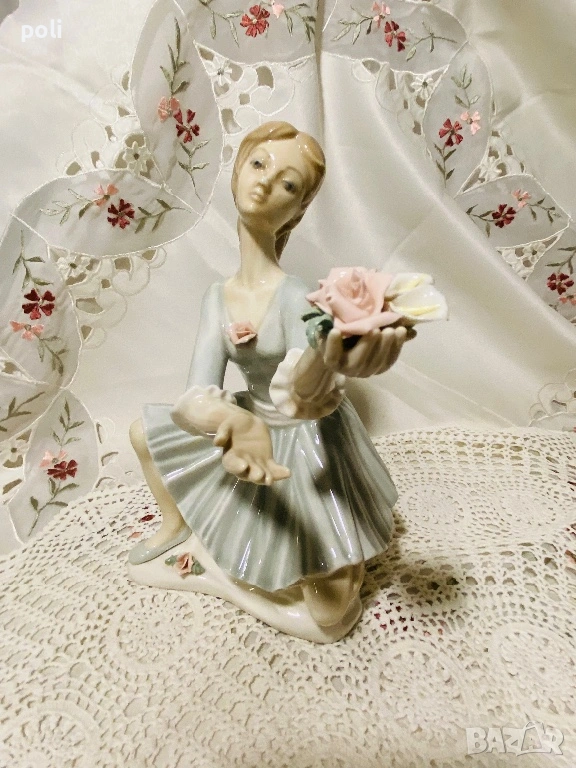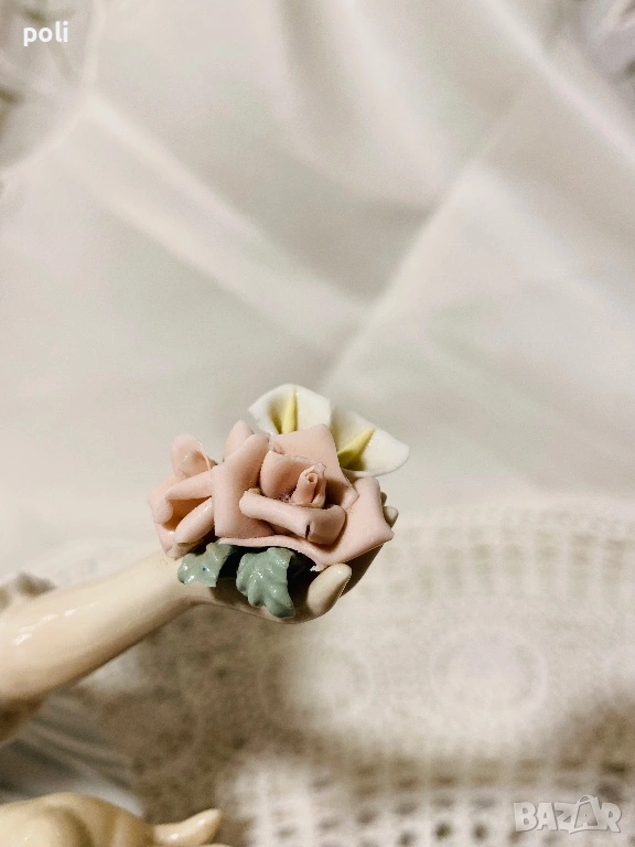 Порцеланова статуетка с височина 23 см . Едното листенце на цветето е отчупено . Цена 20€/39,12 лв .