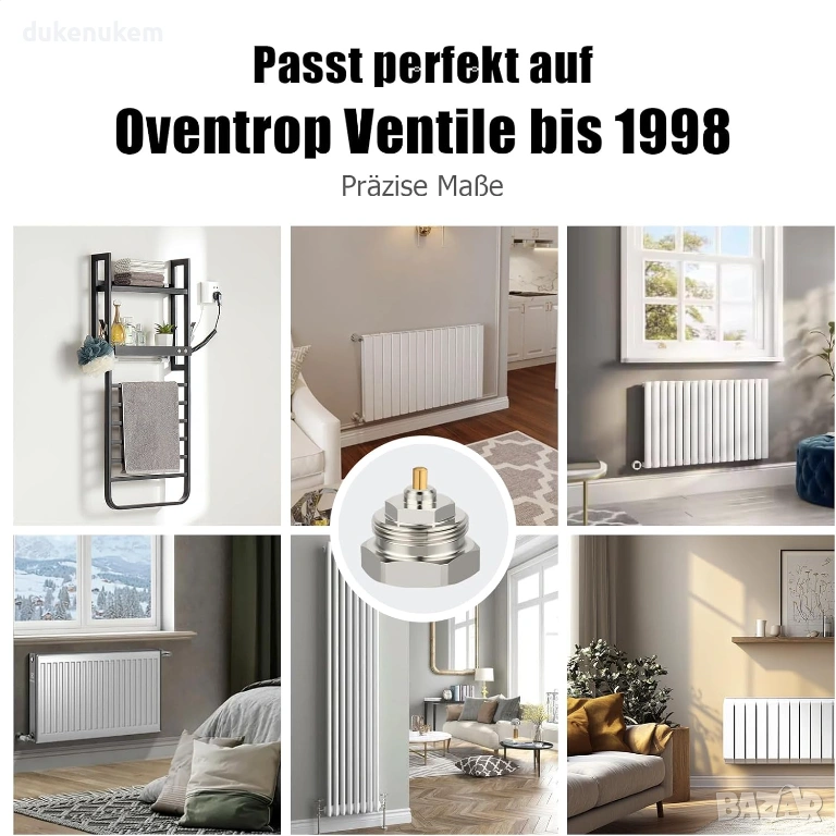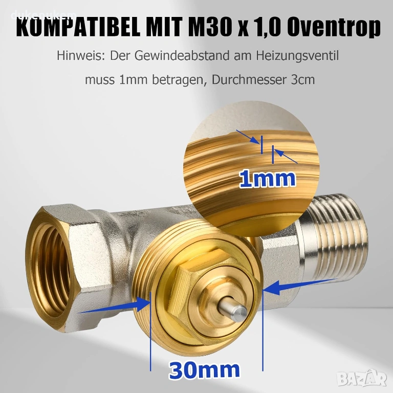 адаптер с вътрешна резба M30 x 1.0 и външна резба M30 x 1.5, специално разработен за по-стари Oventrop радиаторни вентили (до 1998 г.)