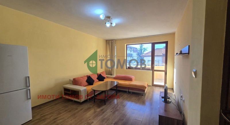 Имоти Томов Стара Загора представя на Вашето внимание обзаведен двустаен апартамент под наем с площ от 60 кв.м, намиращ се в кв. Македонски. Имотът се намира на втори жилищен от общо четири етажа в новопостроена, санирана и добре поддържана тухлена сграда.