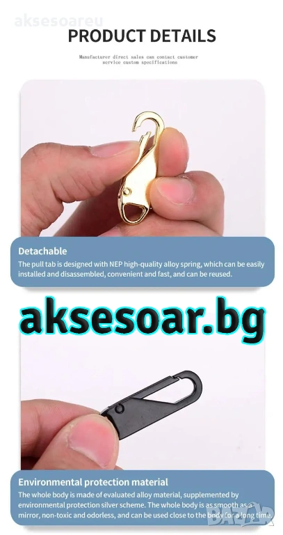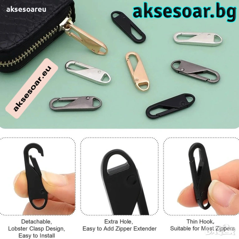 Тип продукт: Плъзгачи за ципове, дръжка за цип - сменяемо карабинерче
