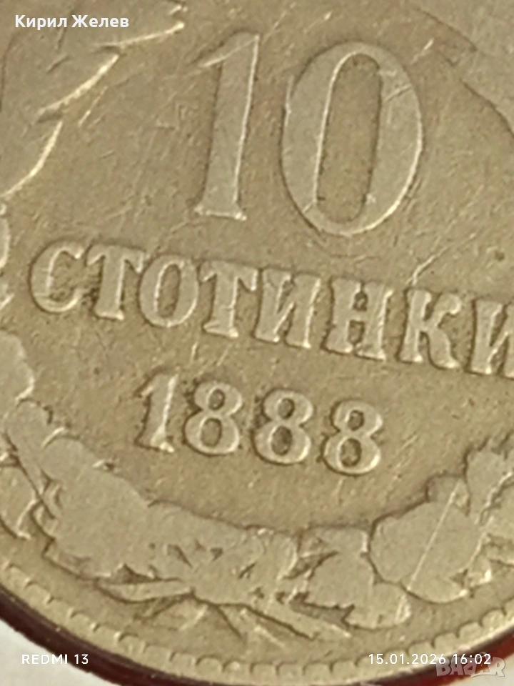 Рядка монета 10 стотинки 1888г. Княжество България за КОЛЕКЦИЯ 53103 → Обява 53111097