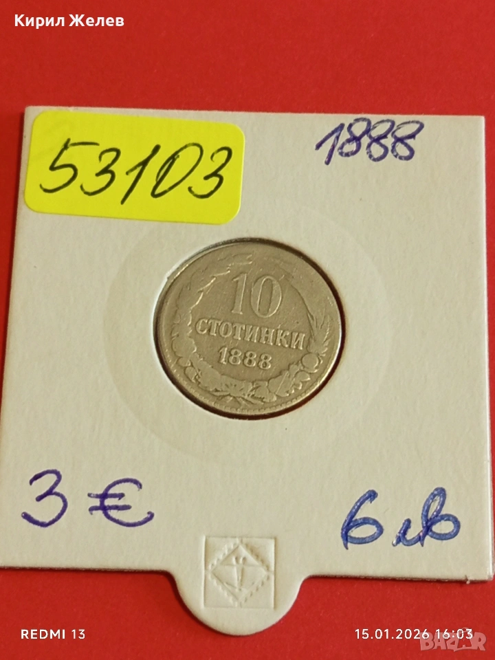 Рядка монета 10 стотинки 1888г. Княжество България за КОЛЕКЦИЯ 53103