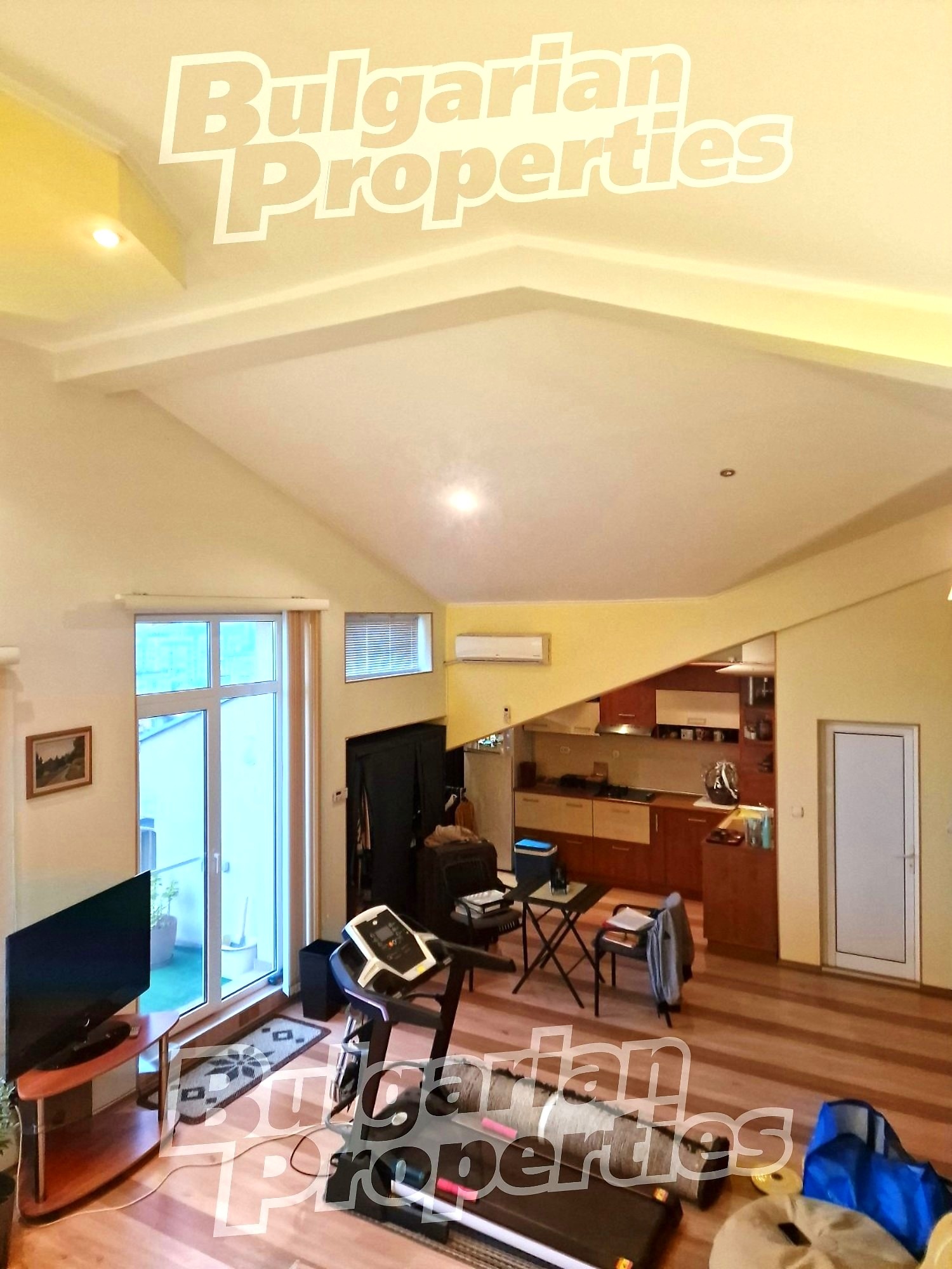 Елегантен мансарден апартамент с леки скосявания, разположен в добре утвърдения и предпочитан жилищен комплекс Южен бряг, в квартал Пазара на Шумен.