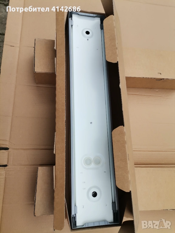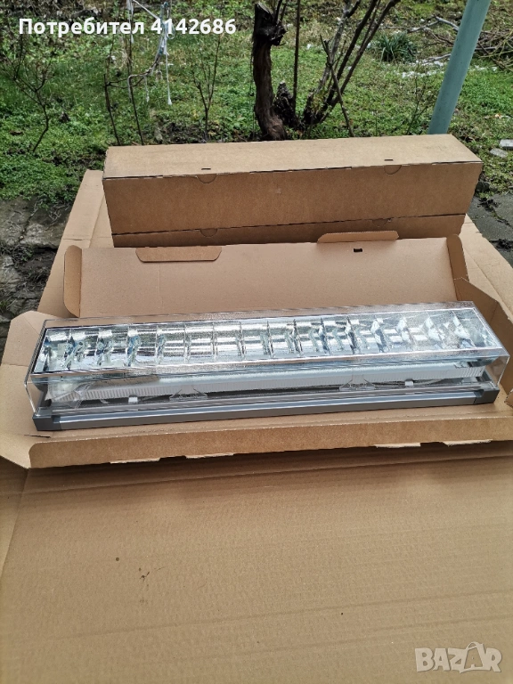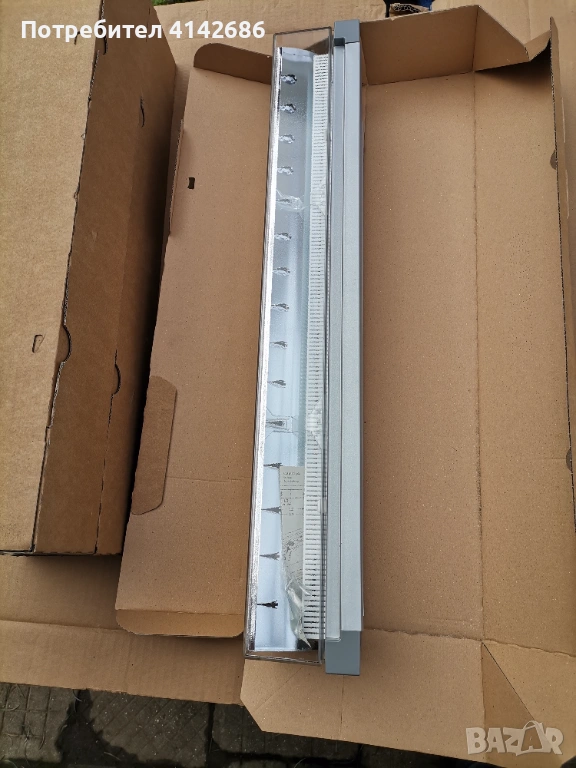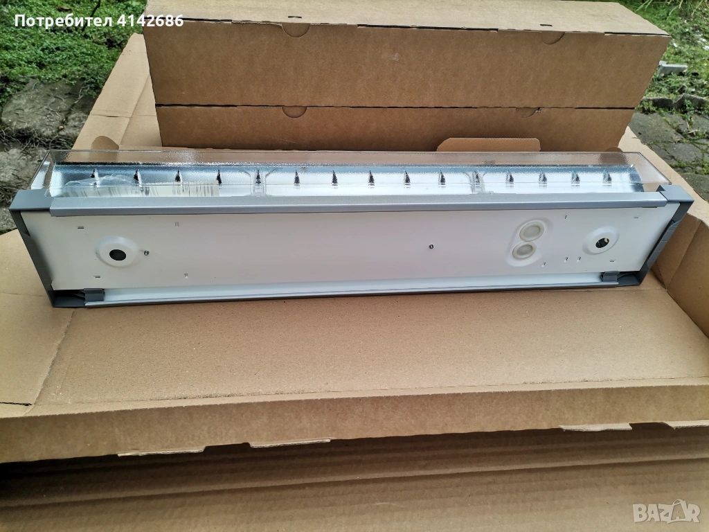 Здравейте, продавам ново осветително тяло Zumtobel perluce d 24W, предназначено да работи с един брой тънка луминисцентна тръба (най-често 24W /840 с дължина от 60 см. - може да видите на последните 2 снимки). Размерите на тялото са следните - дължина 62 см., ширина 12 см. и височина 9 см. Налични имам 3 броя, цена за 1 брой 13 евро.