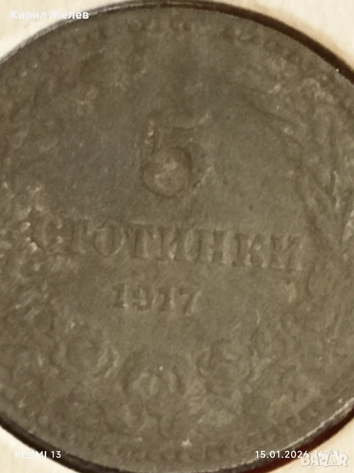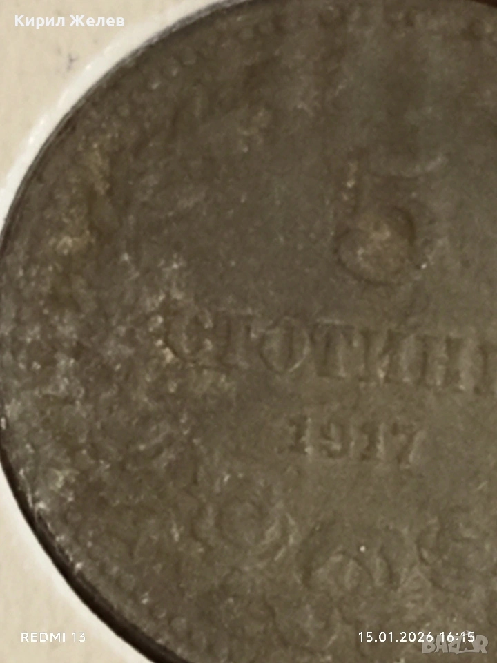 Рядка монета 5 стотинки 1917г. Царство България за КОЛЕКЦИЯ 53025 → Обява 53111281