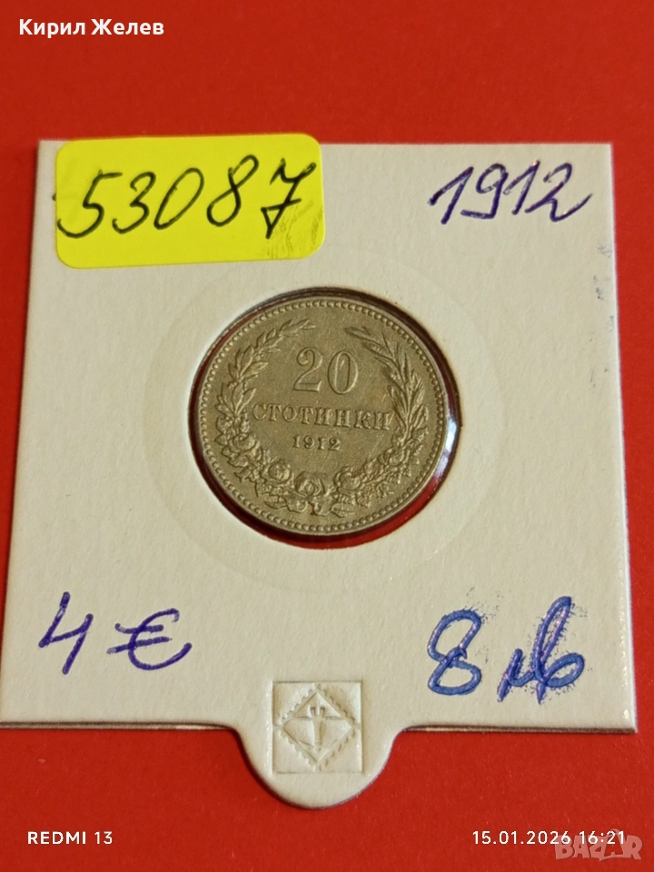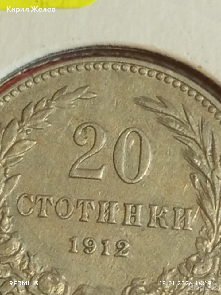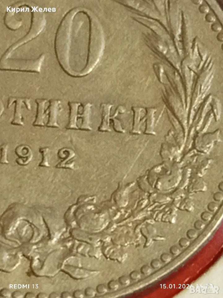 Монета 20 стотинки 1912г. Царство България Съединението прави силата 53087 → Обява 53111324