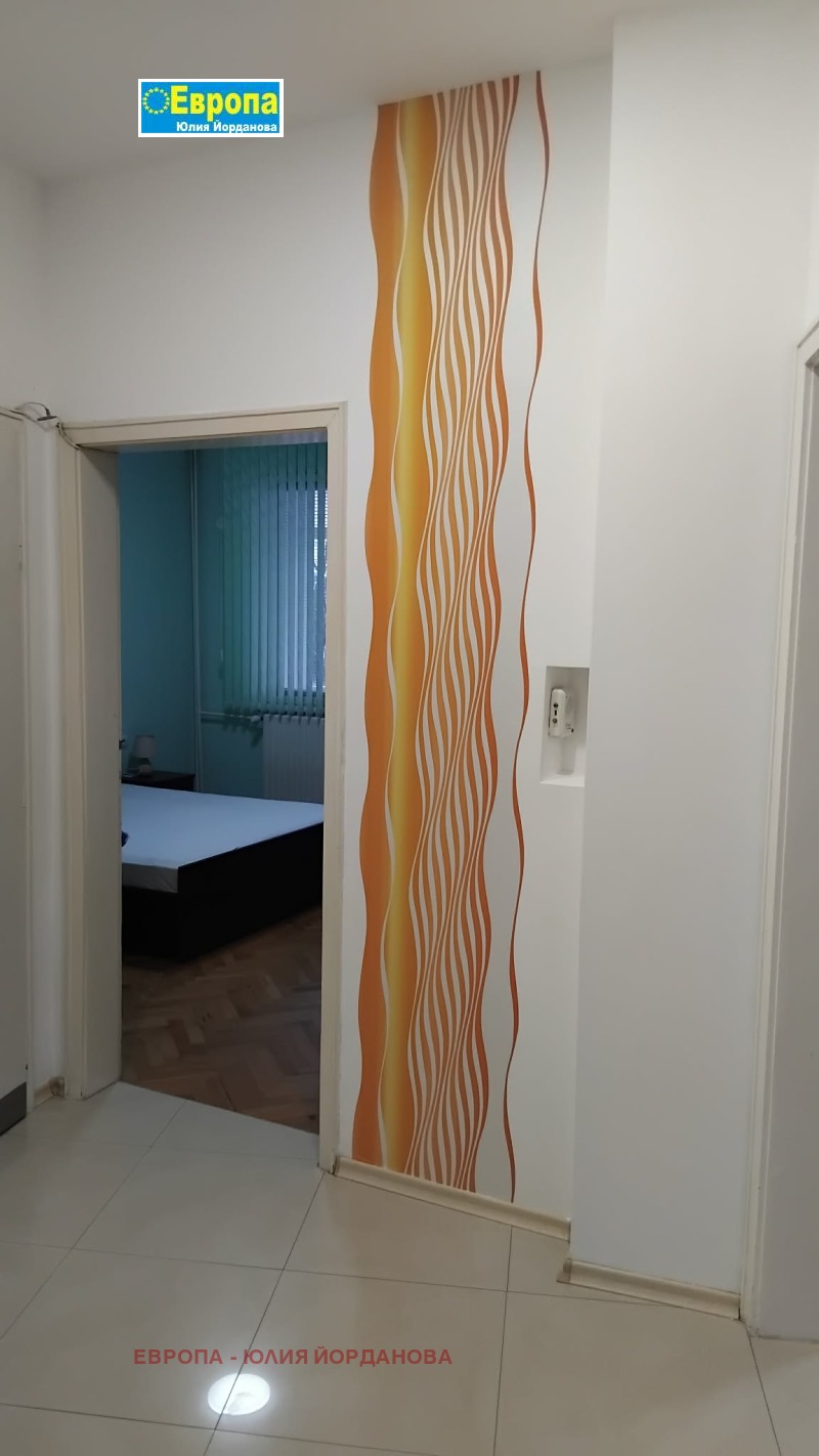 Агенция 'ЕВРОПА',отдава под наем апартамент състоящ се от хол, спалня, голяма кухня с тераси на всички стаи, двете са остъклени/PVC/дограма,коридор с ниша за пералня, баня и тоалетна общо,отдава се с обзавеждане и оборудване,подове- паркет; гранитогрес, нова баня. Жилището е в отлично състояние, след ремонт.Има климатик и централно отопление и топла вода.За наематели без домашни любимци.Зад блока има места за паркиране.