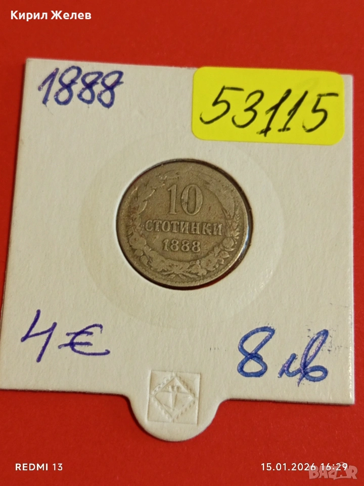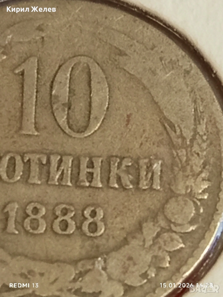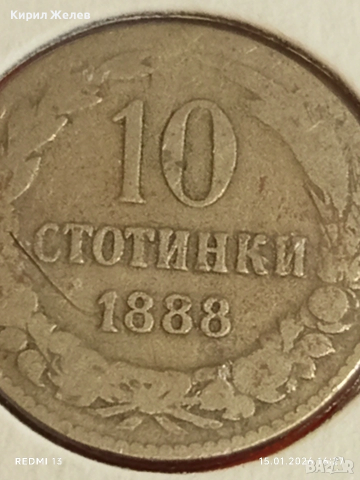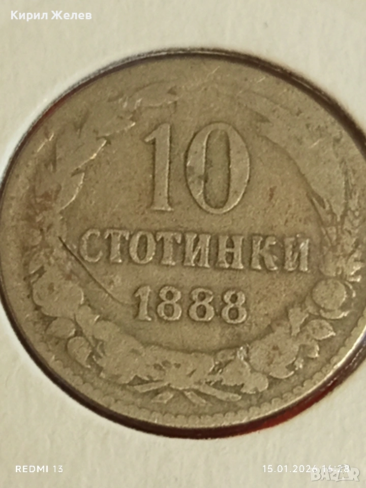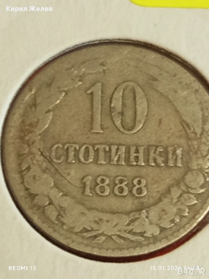 Монета 10 стотинки 1888г. Княжество България над стогодишна монета 53115 → Обява 53111466