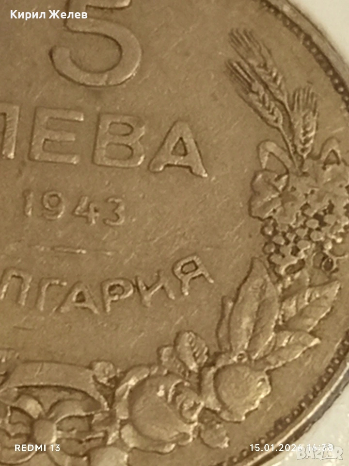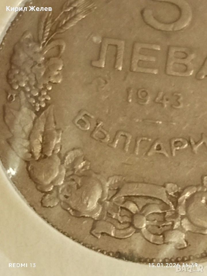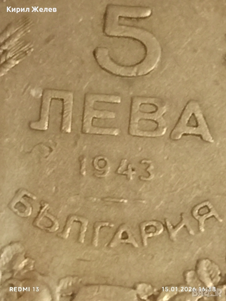 Монета 5 лева 1943г. Царство България Хан Крум за КОЛЕКЦИЯ 53108 → Обява 53111610