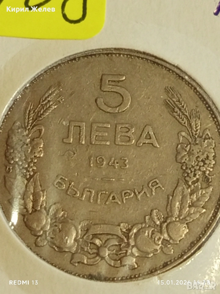Монета 5 лева 1943г. Царство България Хан Крум за КОЛЕКЦИЯ 53108