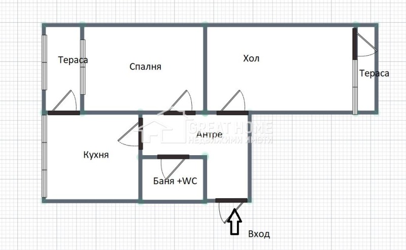 Агенция за недвижими имоти Great Home представя на вашето внимание тристаен тухлен апартамент.
