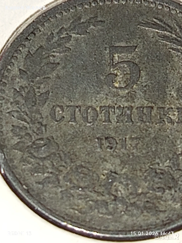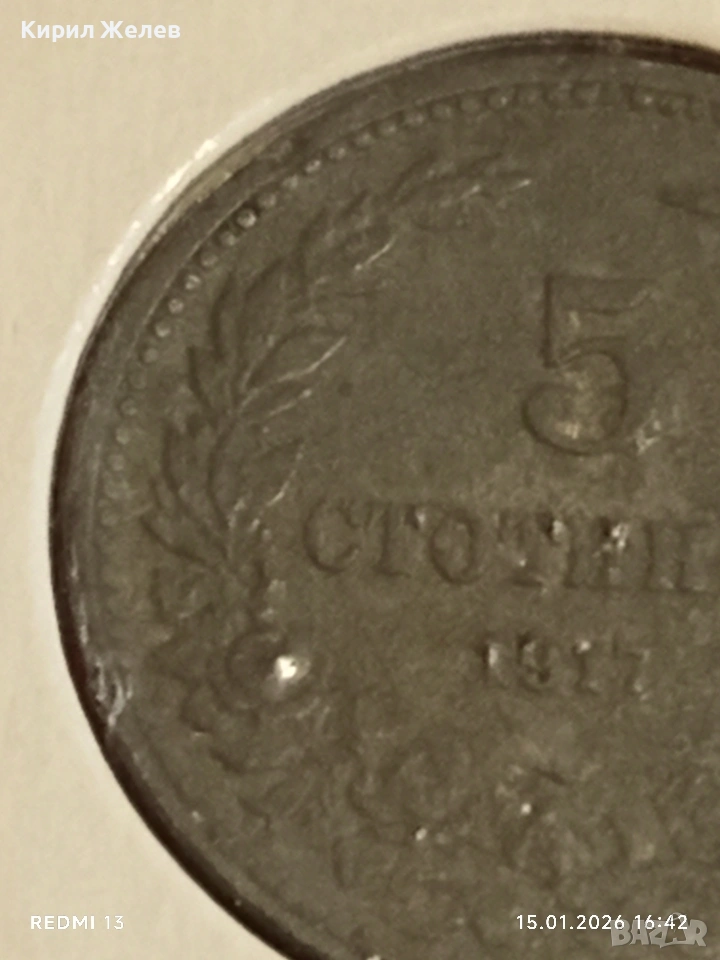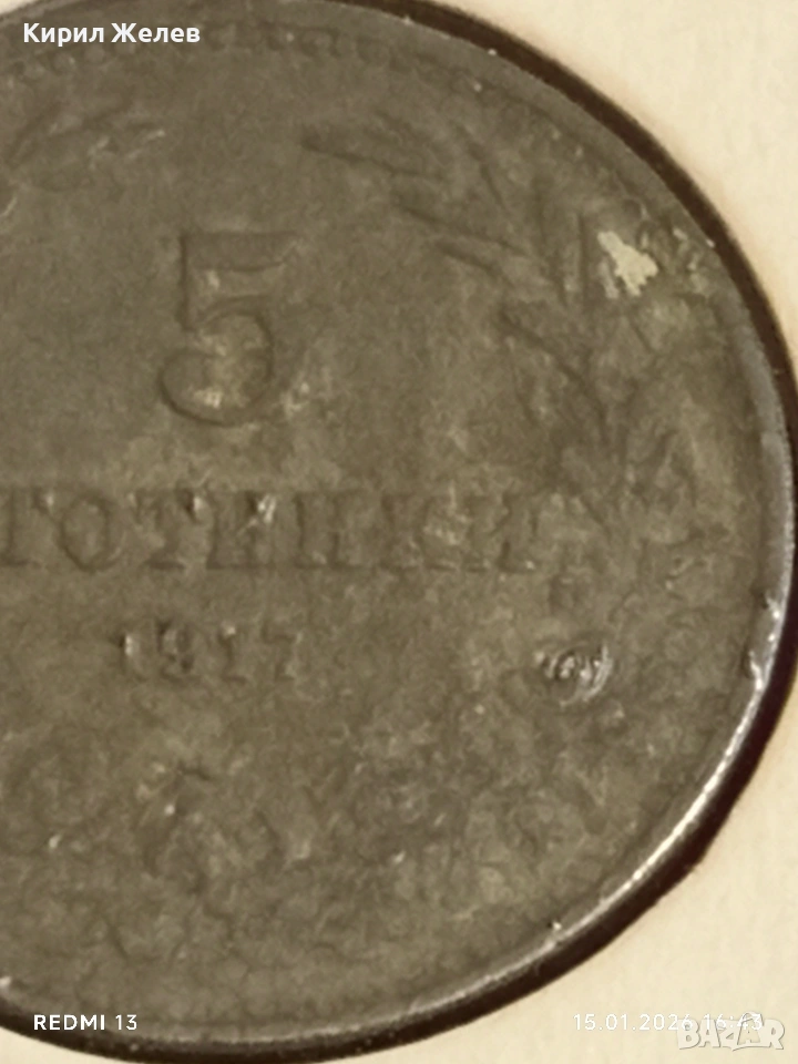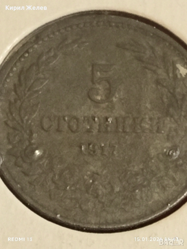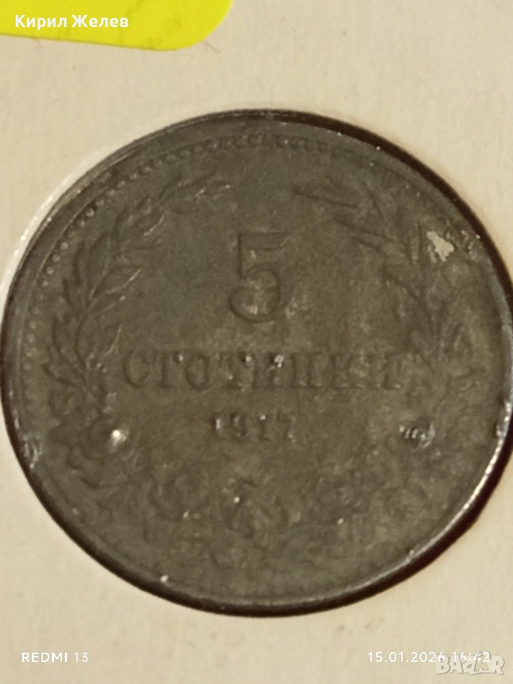Монета 5 стотинки 1917г. Царство България Съединението прави силата 53095 → Обява 53111679