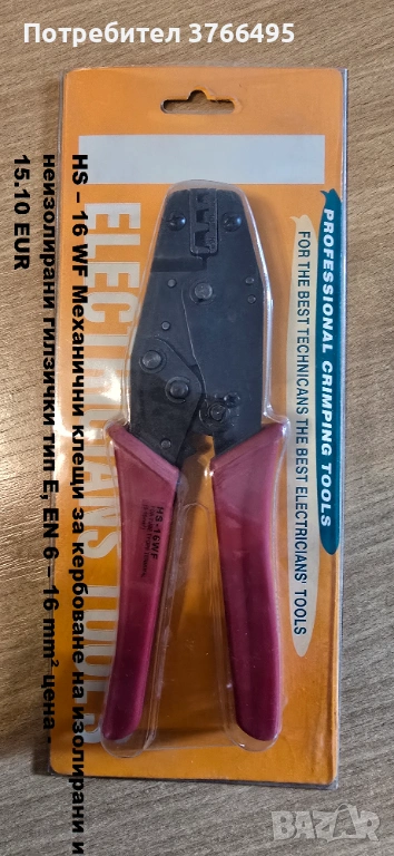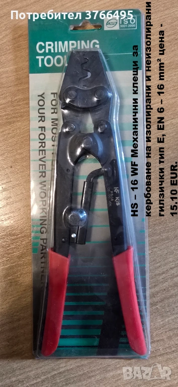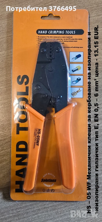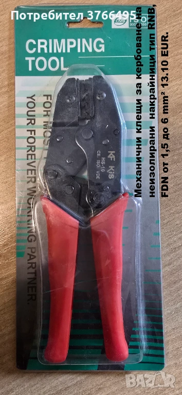 Клещите за кербоване (кримпване) на неизолирани кабелнинакрайници са надежден инструмент за професионална и домашна електромонтажна работа.Изработени от висококачествена стомана, те осигуряват дълъг живот и прецизно кримпване без деформации. Ергономичната дръжка гарантира удобен захват и намалява умората при продължителна употреба. Идеални са за електротехници, сервизни техници и любители, търсещи качество и сигурност.