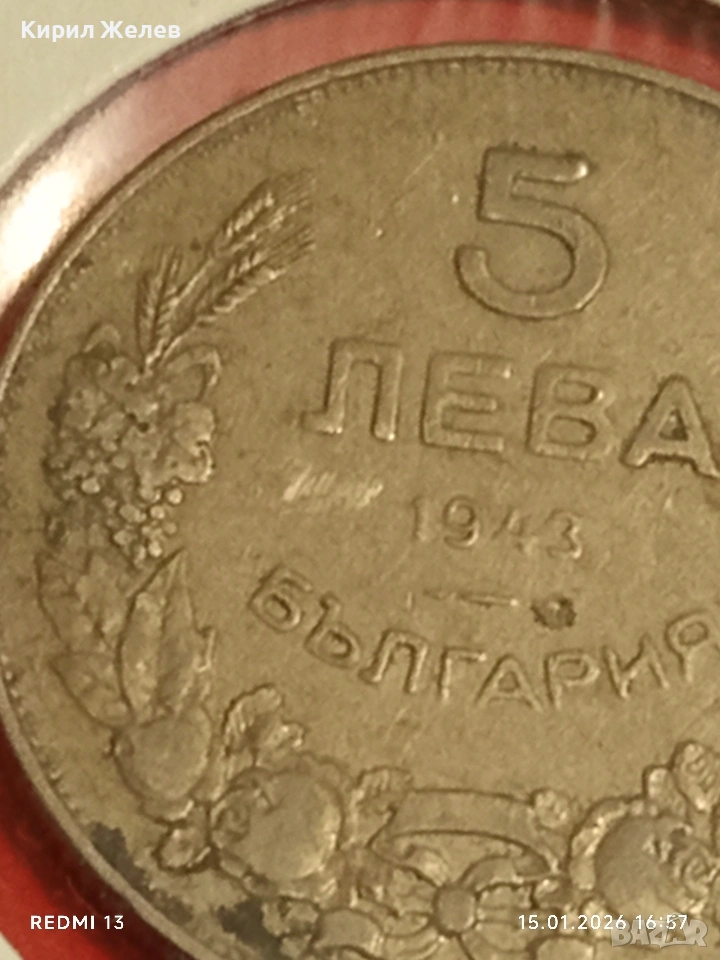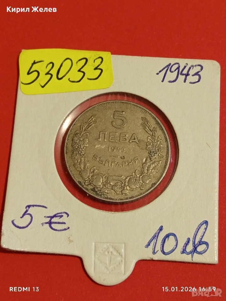Монета 5 лева 1943г. Царство България Хан Крум за КОЛЕКЦИОНЕРИ 53033 → Обява 53111835