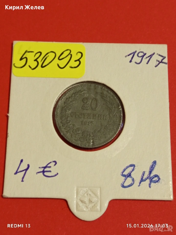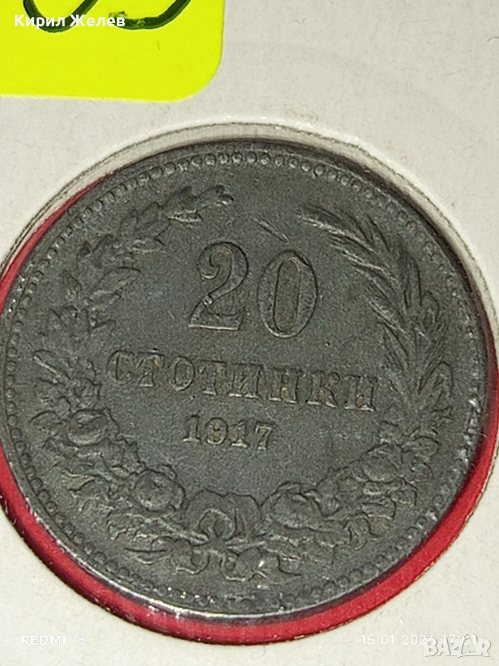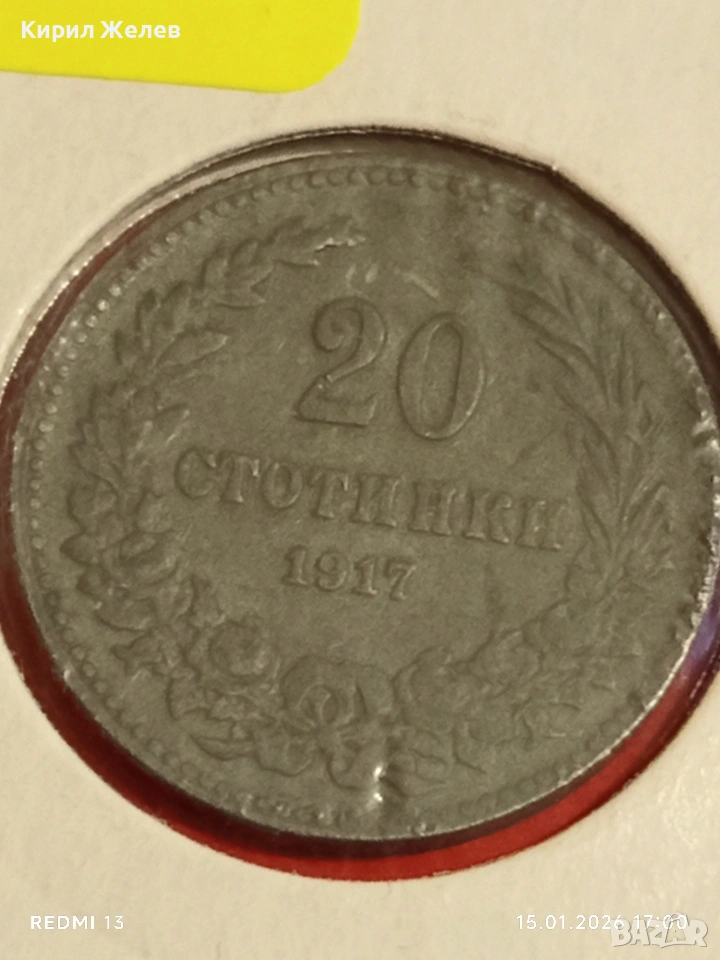 Монета 20 стотинки 1917г. Царство България рядка за КОЛЕКЦИЯ 53093 → Обява 53111888