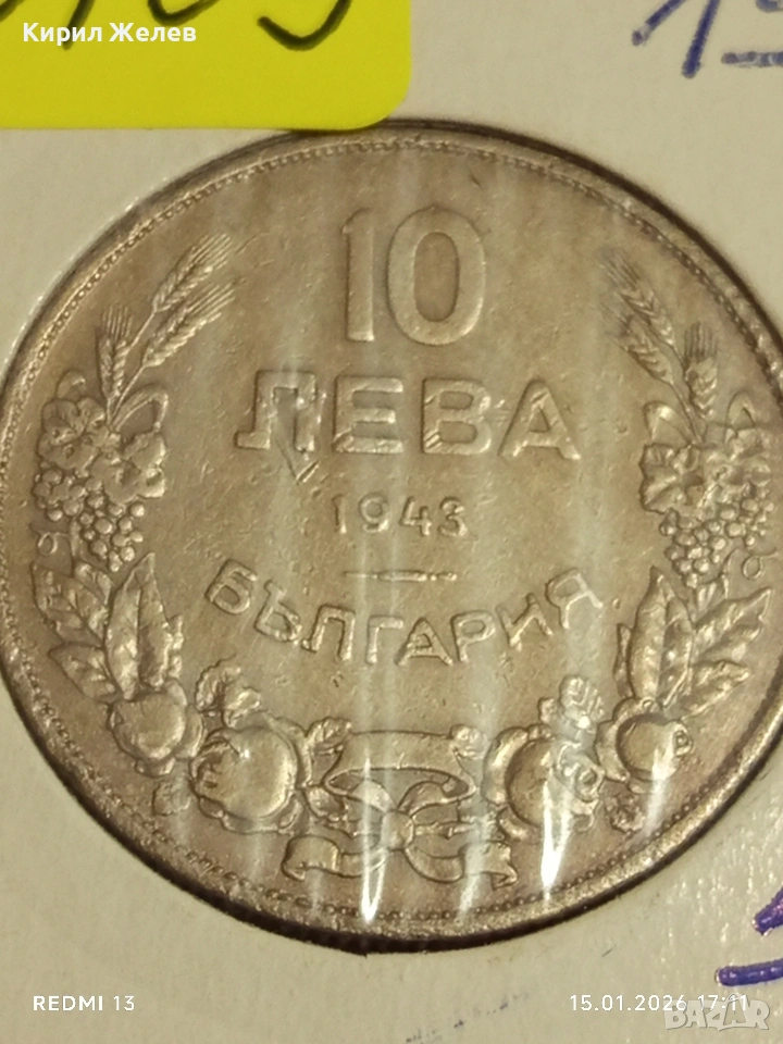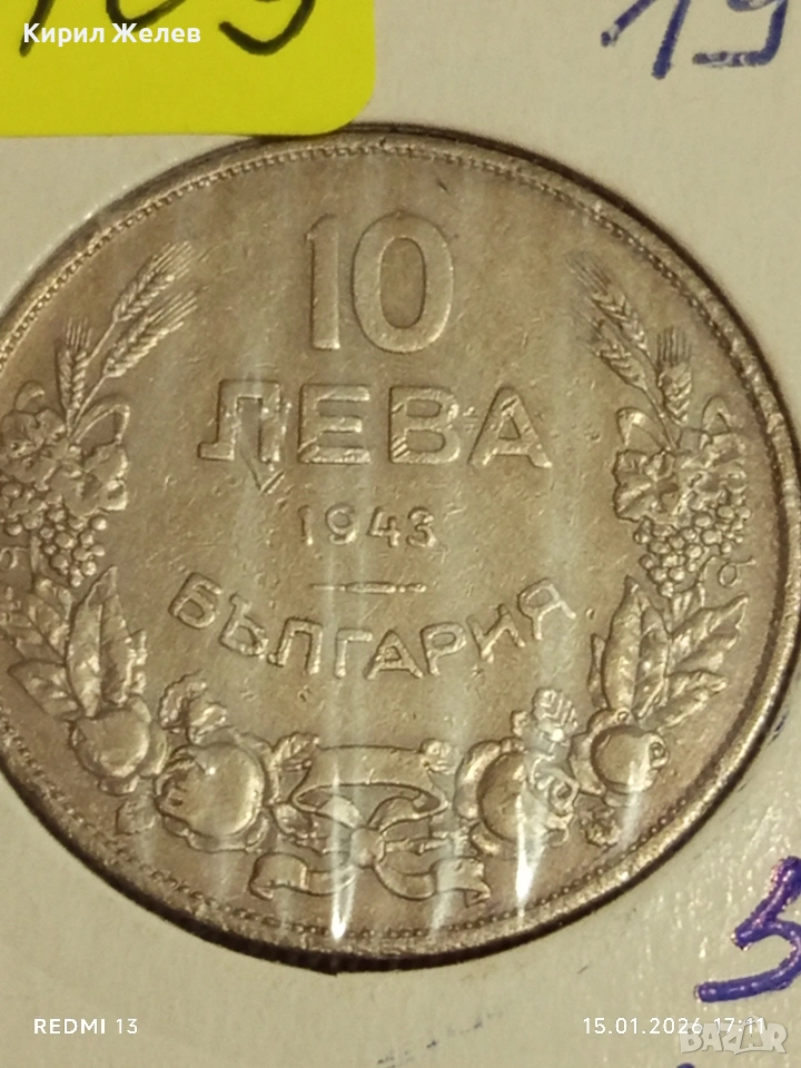 Монета 10 лева 1943г. Царство България Хан Крум за КОЛЕКЦИОНЕРИ 53109 → Обява 53112002
