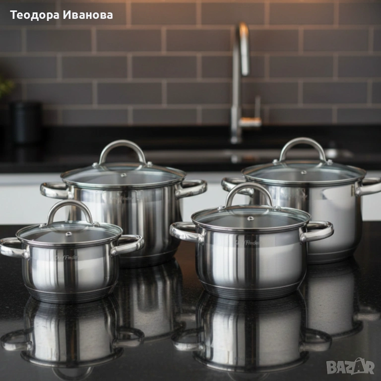 Комплект тенджери Cheffinger – 8 части инокс с капаци, за всички видове котлони