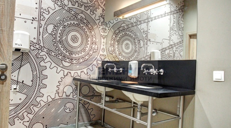 Административна част (~504 м²) с модерни офиси, заседателна зала, помещения за персонала, столова