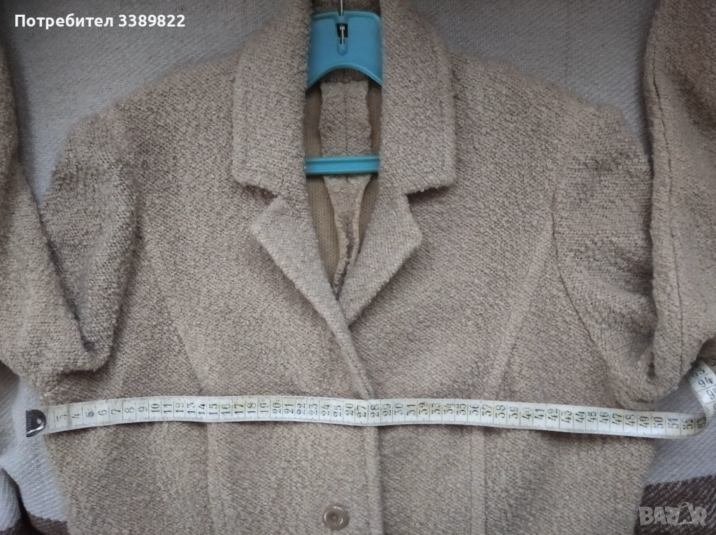 Сако - закопчава се с копчета, дължина от рамото до долу 72см, дължина на ръкава 64см,