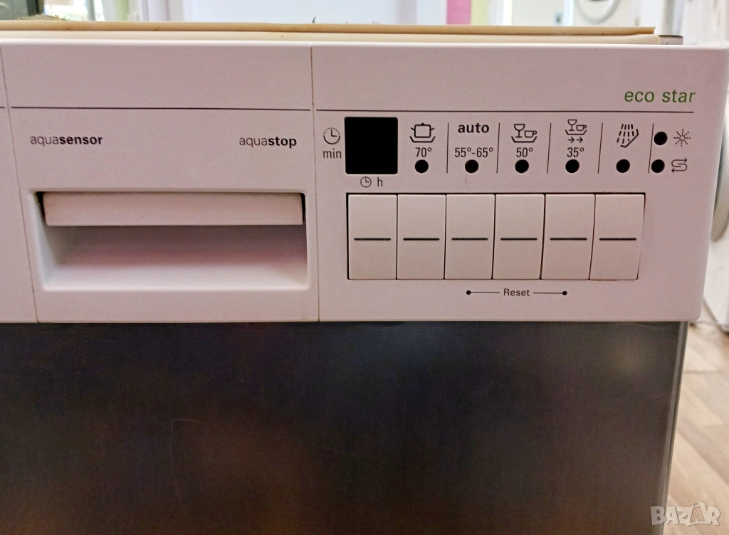 Съдомиялната е произведена в Германия / цвят - бял + инокс/ за вграждане под плот / размери - 45х58х81см. / с капацитет 9 комплекта / с 5 основни програми ( интензивна, автоматична, еко, кратка и изплакване) + отложен старт, LCD дисплей с оставащо време, индикатори за процеса на работа и бутон включено / изключено.