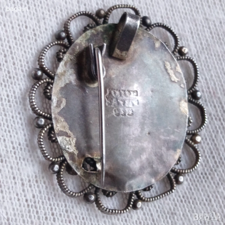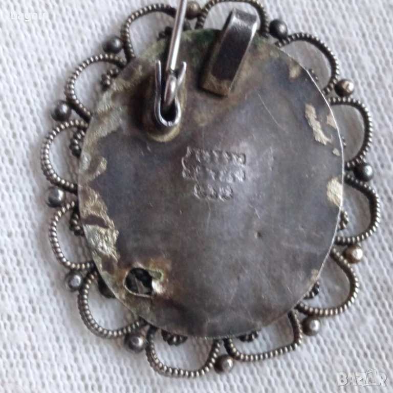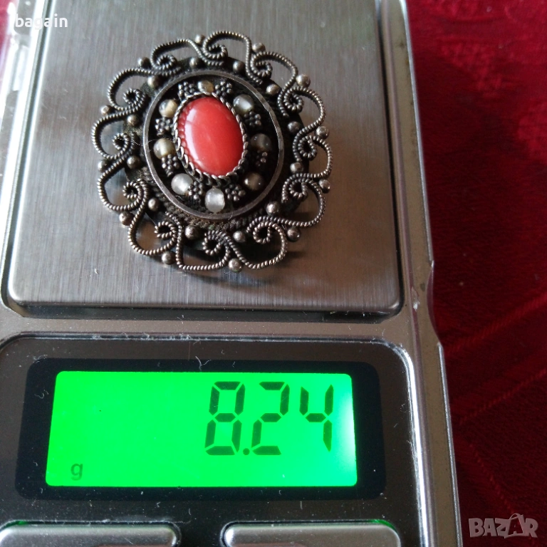 Уникална сребърен медальон-брошка с корали. → Обява 53112602