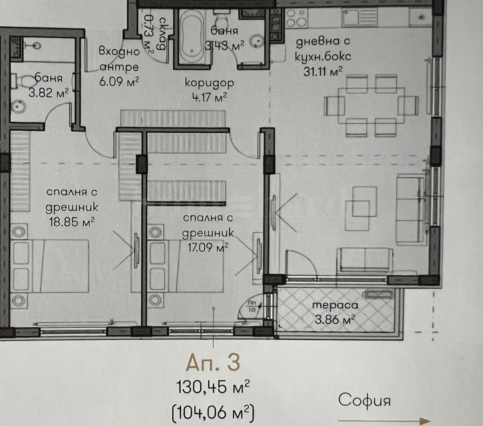 Представяме за продажба тристаен апартамент с акт 16 в луксозен затворен комплекс в кв. Драгалевци.