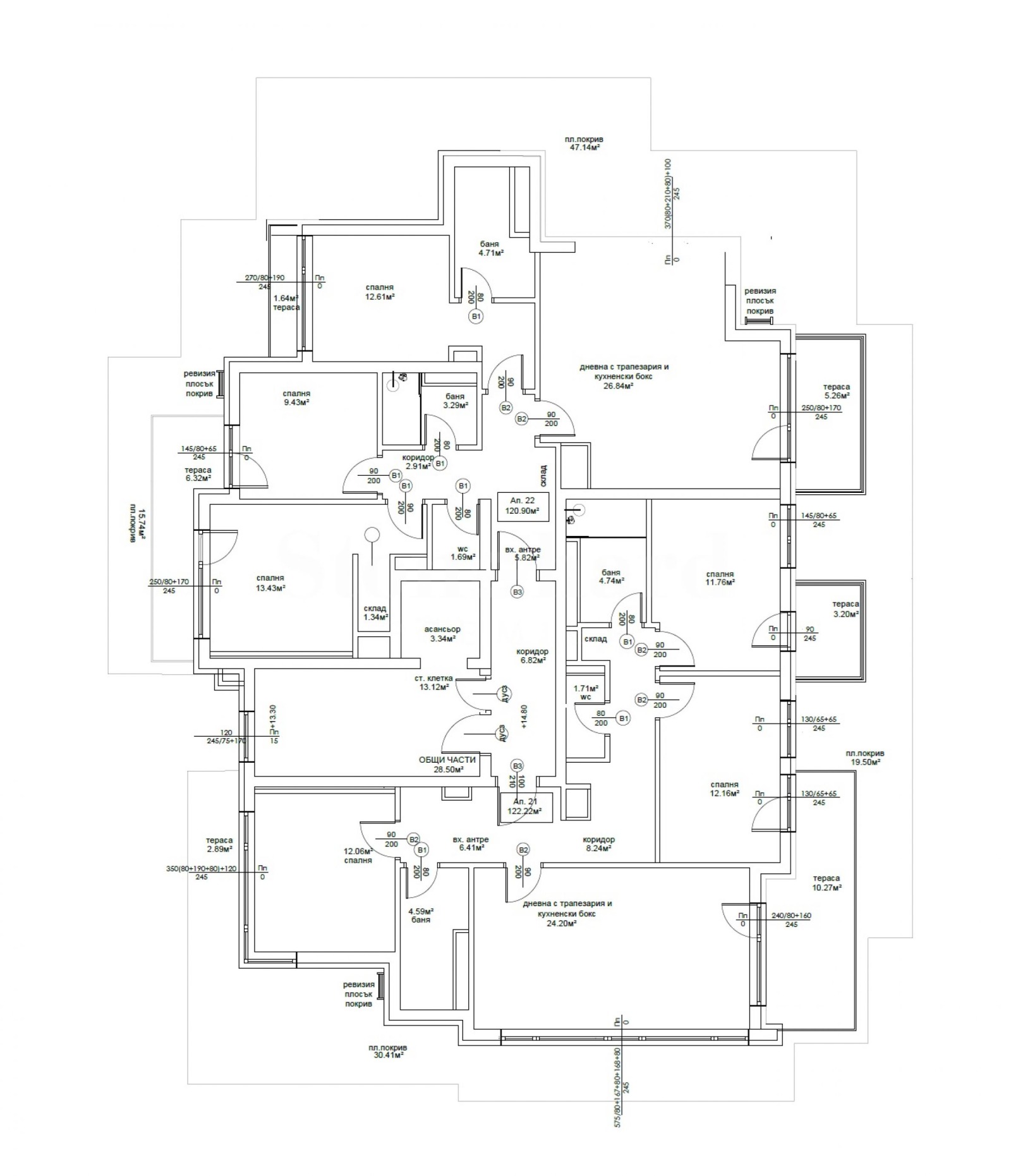 Имотът от 137.10 кв.м е разположен на 5-и етаж.