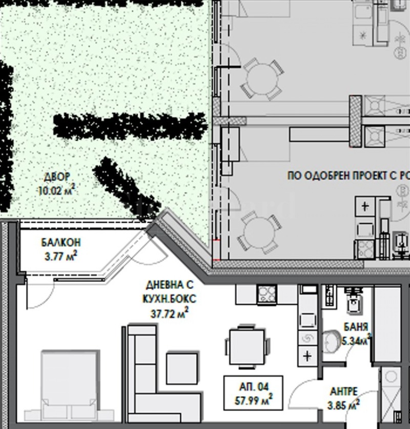 Площ: 69,57 кв.м (57,94 кв.м чиста площ + 11,63 кв.м общи части);