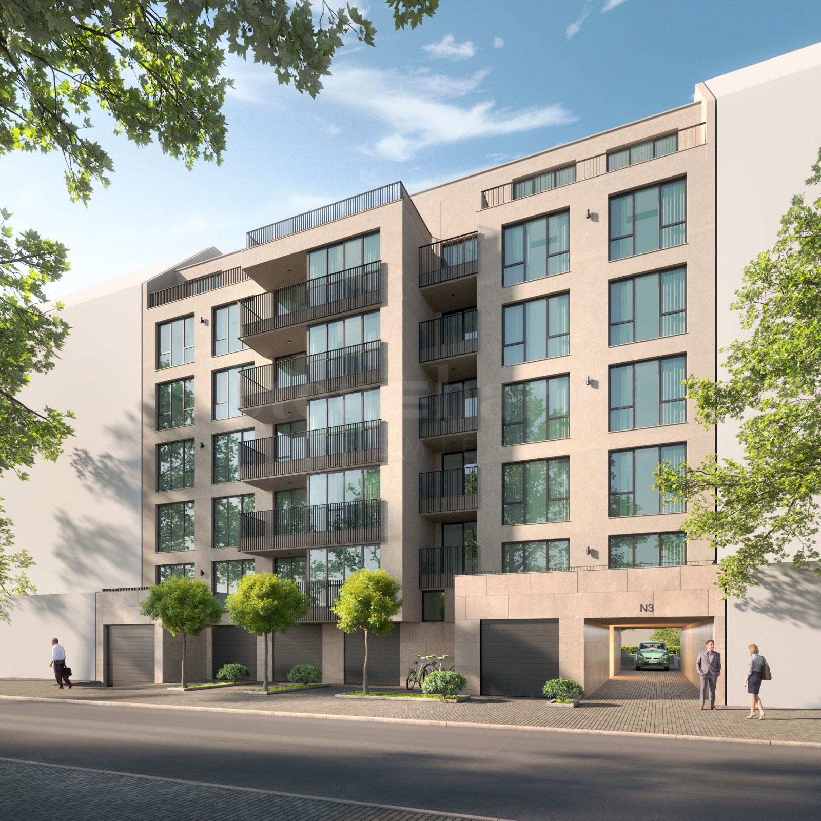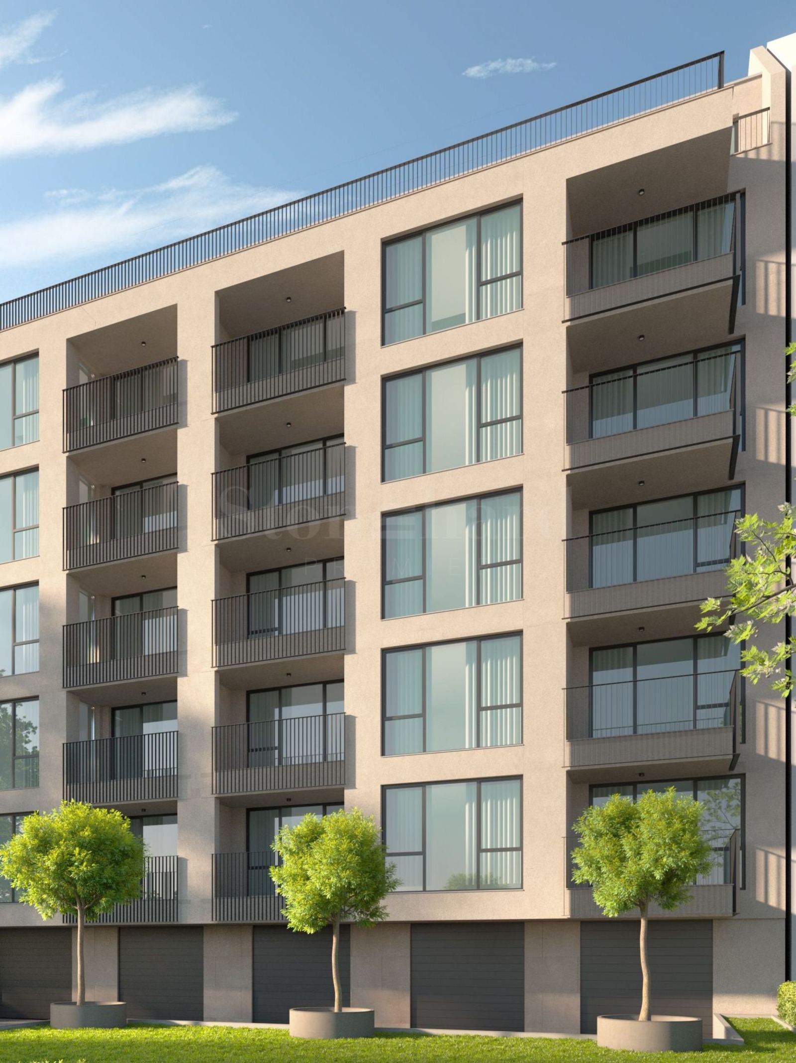 Проектирана е самостоятелна жилищна сграда на 7 етажа с надземни паркоместа и гаражи.