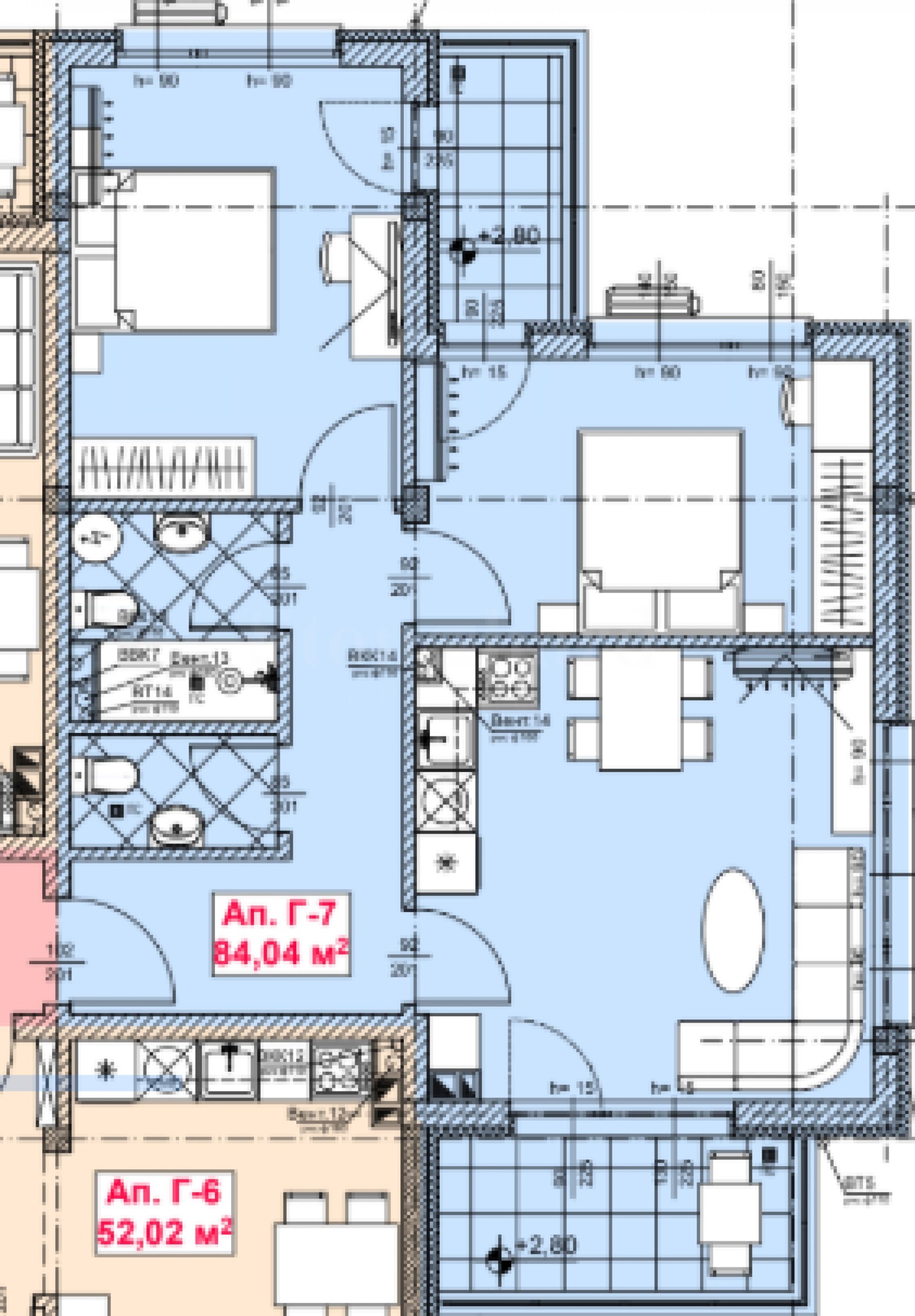 2 спални;