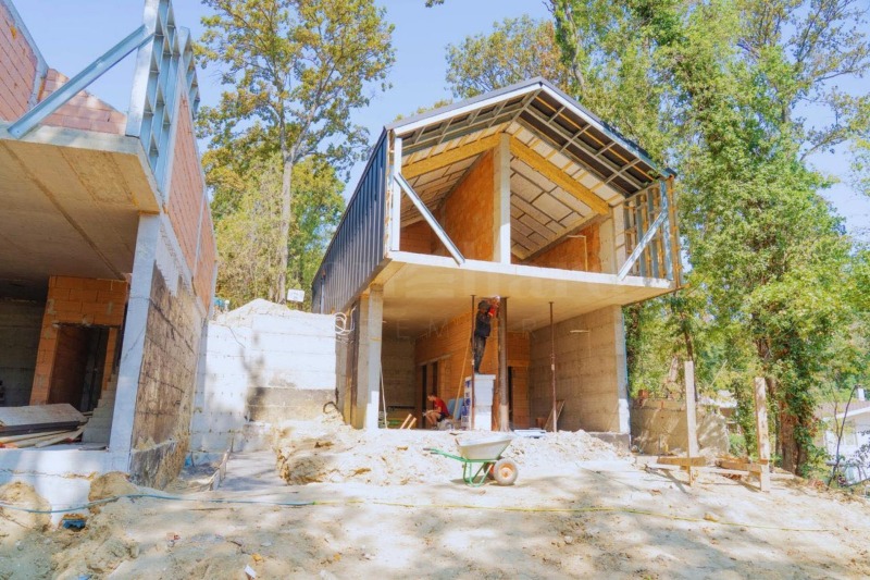 стените на сградата са изградени от метална конструкция (LSTC) и полистирол бетон с дебелина 200-250 мм;