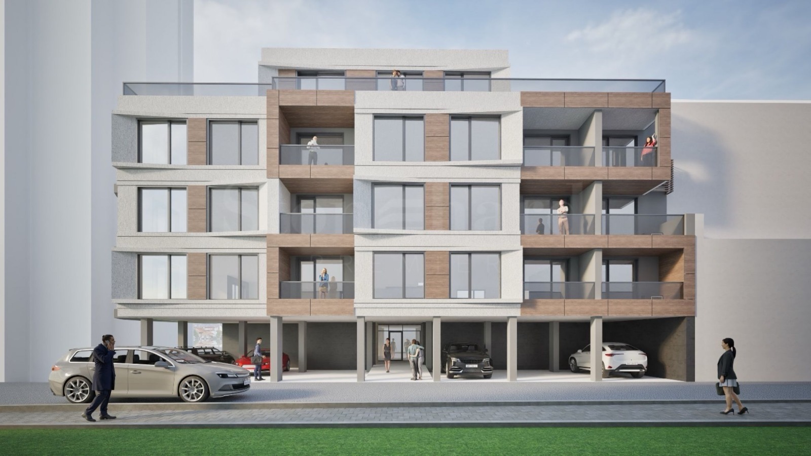 Пет жилищни етажа с двустайни и тристайни имоти, завършени по БДС.