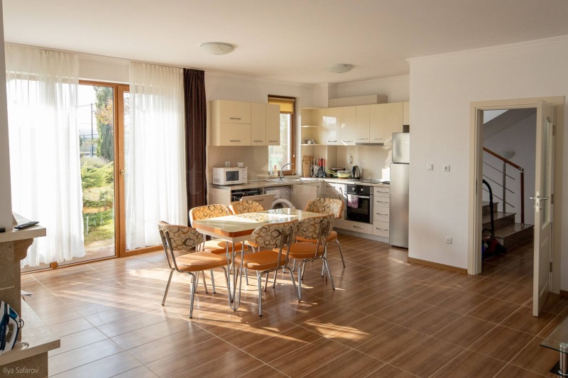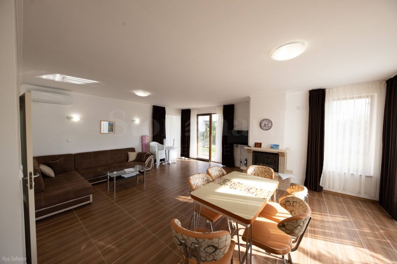 Къщата е елегантно обзаведена, всяка стая е проектирана с внимание към детайла. Отоплението е посредством камина, климатици и подово отопление за максимален комфорт. Кухнята е напълно оборудвана с фурна, аспиратор, хладилник, микровълнова, тостер, съдомиялна.