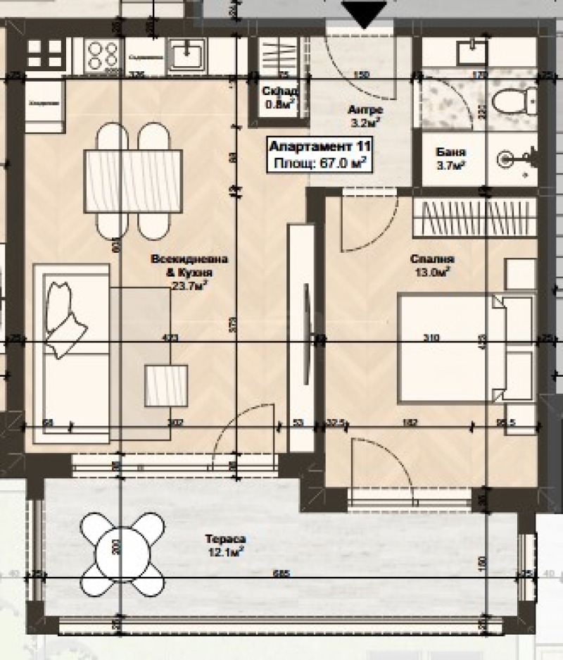 дневен тракт с кухня;