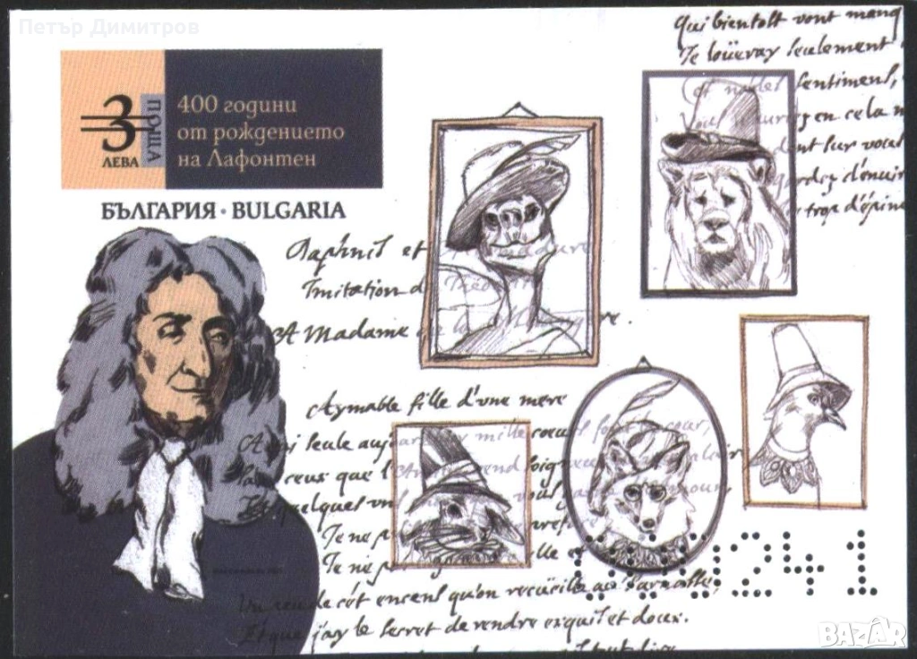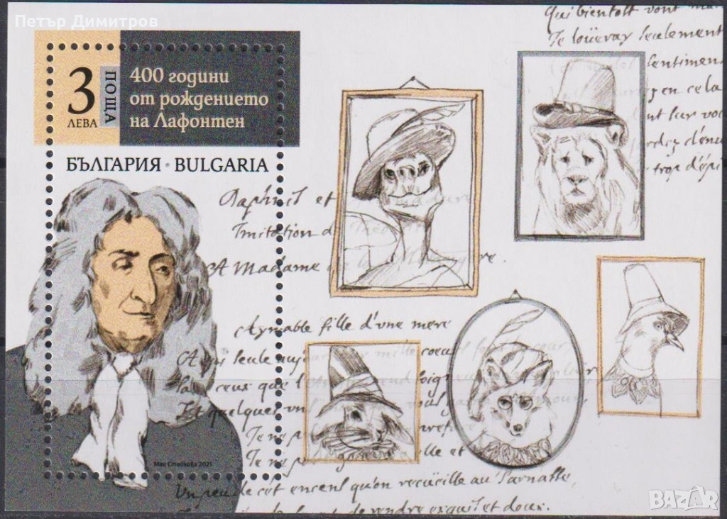 4. Чист блок сувенирен блок Лафонтен 2021 от България. Без номинална стойност. Неперфориран. Негумирана хартия. Тираж 400 броя. Цена € 3,50 (сн. 4)