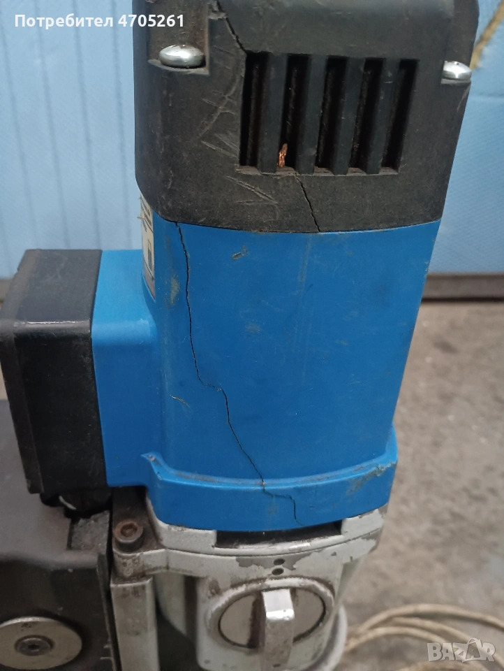 магнитна бормашина внос от чужбина,има пукнатини в пластмасовия корпус (виждат се на снимките) което не пречи на прекрасната работа на машината