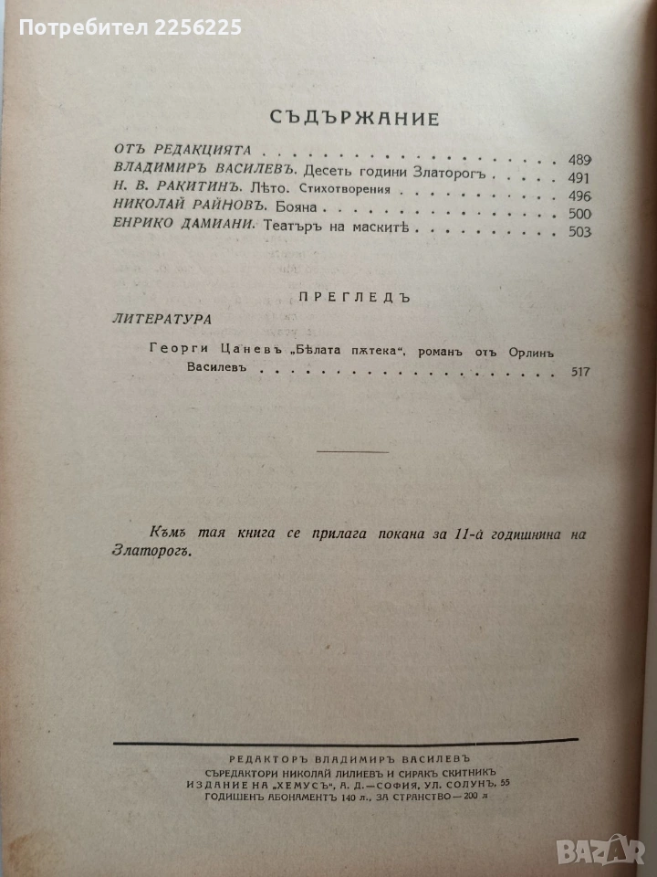Списание Златорогь 1929г ( 1-10 ) → Обява 53113499