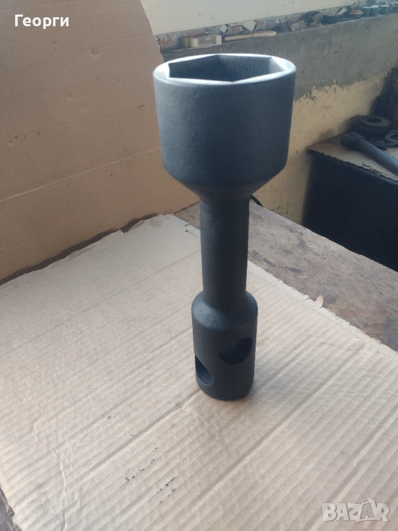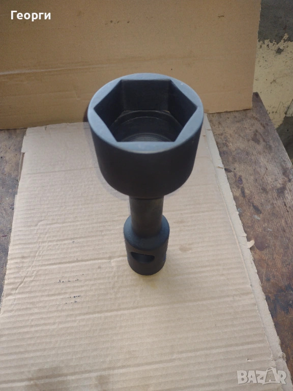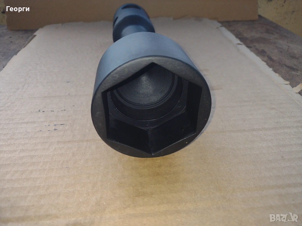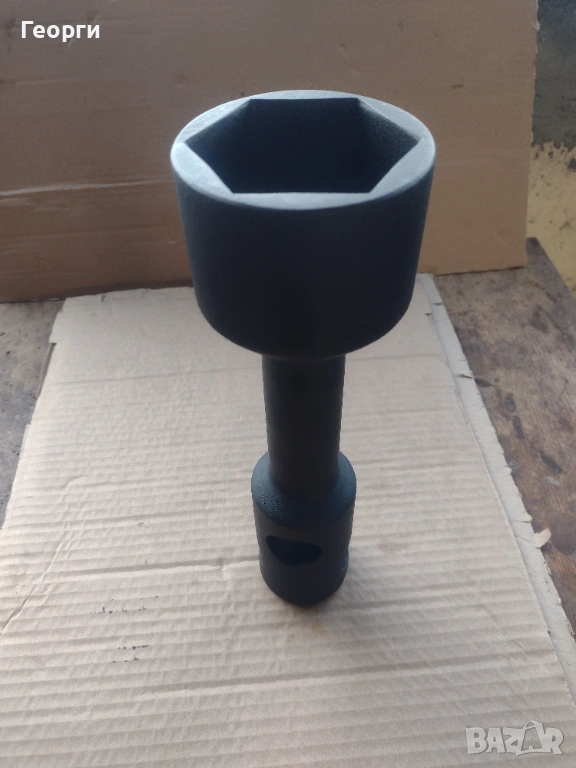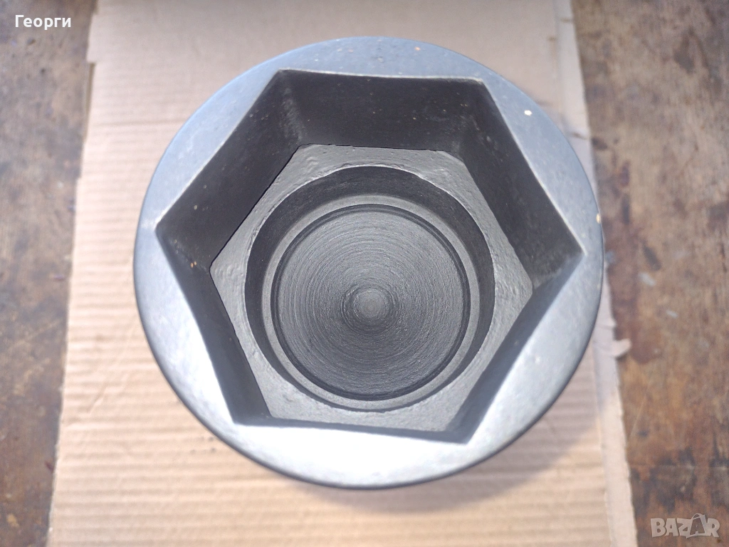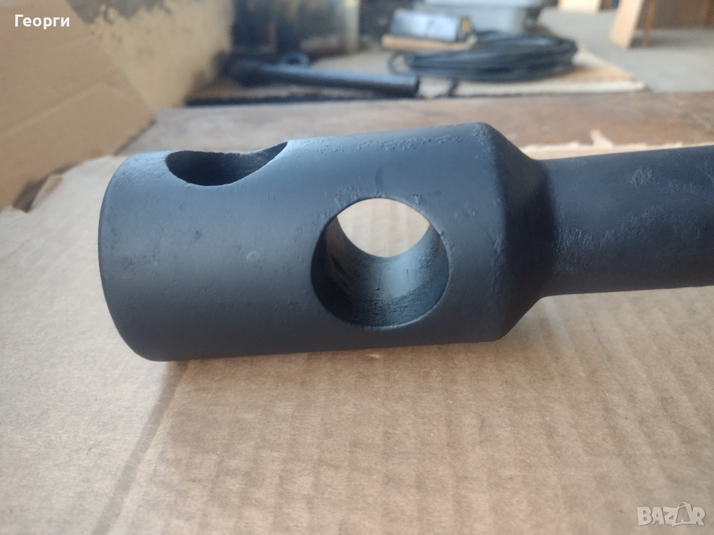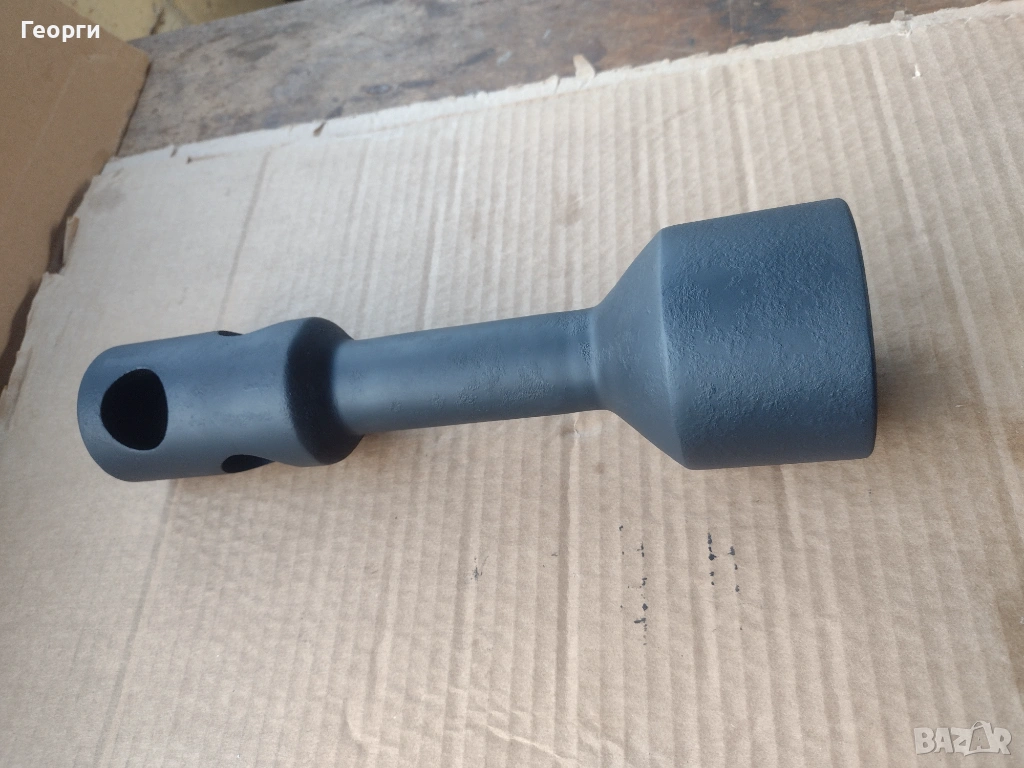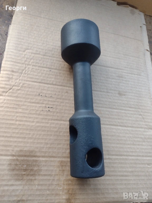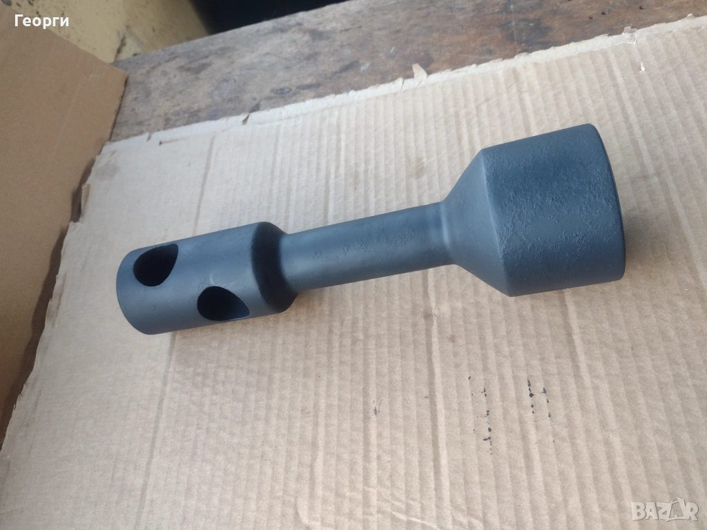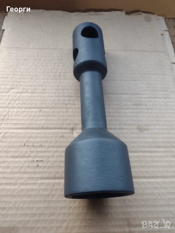 Ключа е нов в отлично състояние за професионално приложение и големи натоварвания .Дебелостенен , с два отвора на главата на шийката за въртене с два лоста при нужда . Захват с дълбочина на гайката до 50 мм