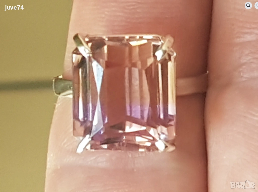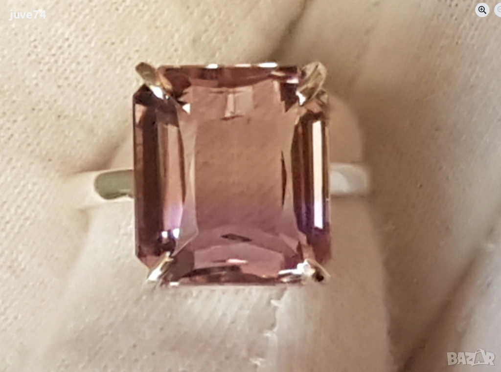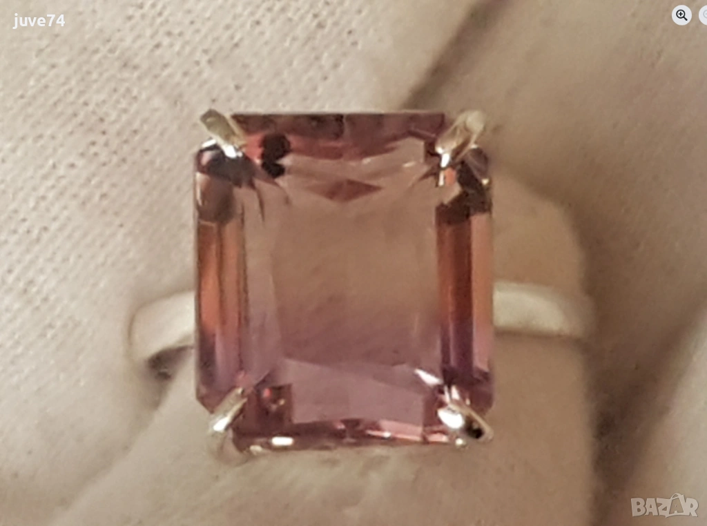 СРЕБЪРЕН ПРЪСТЕН С АМЕТРИН (БРАЗИЛИЯ). ОТЛИЧНО КАЧЕСТВО И ЧИСТОТА НА КАМЪКА. ТЕГЛО-11.77 кт. РАЗМЕР-13.10 x 11.68 x 9.58 MM. ОБРАБОТКА-ОКТАГОН. РАЗМЕР НА ПРЪСТЕНА-57. ВЪТРЕШЕН ДИАМЕТЪР- 18.2 мм. ЦЕНА-110€.