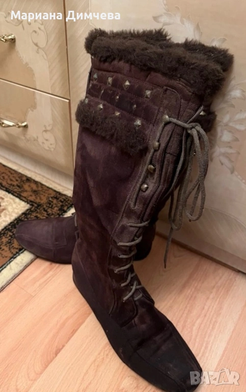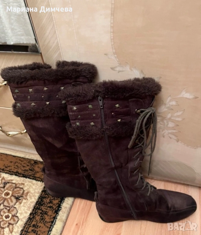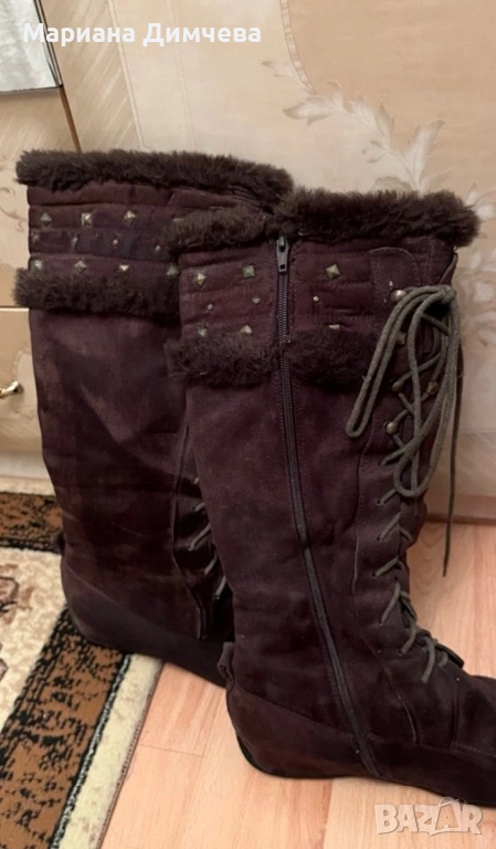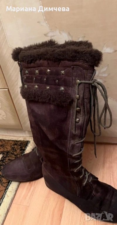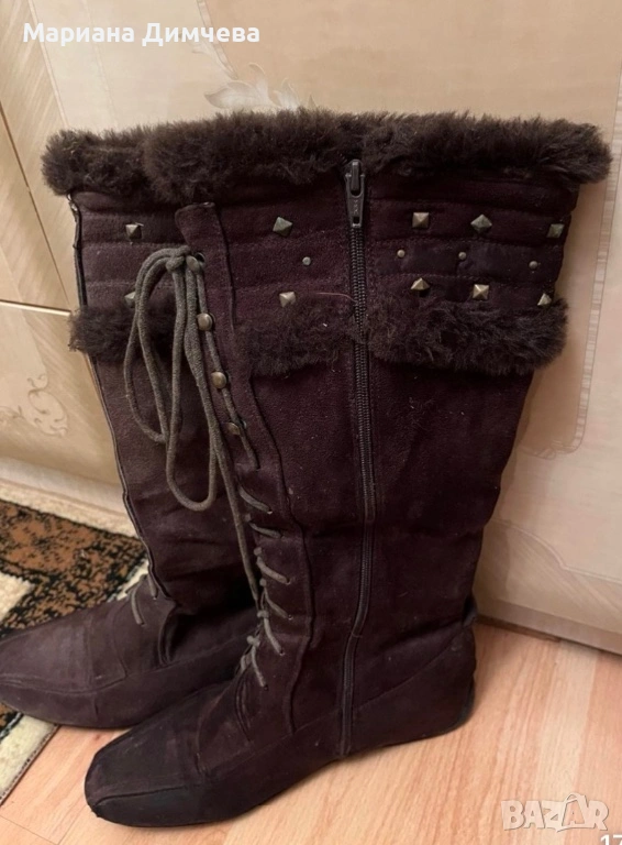Продавам дамски зимни ботуши в тъмен цвят (кафяв), с мека,топла и пухена подплата отвътре.