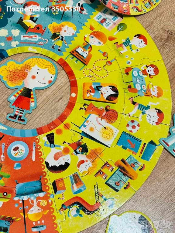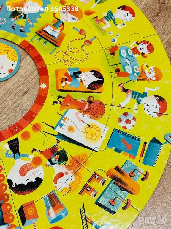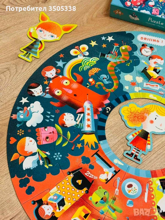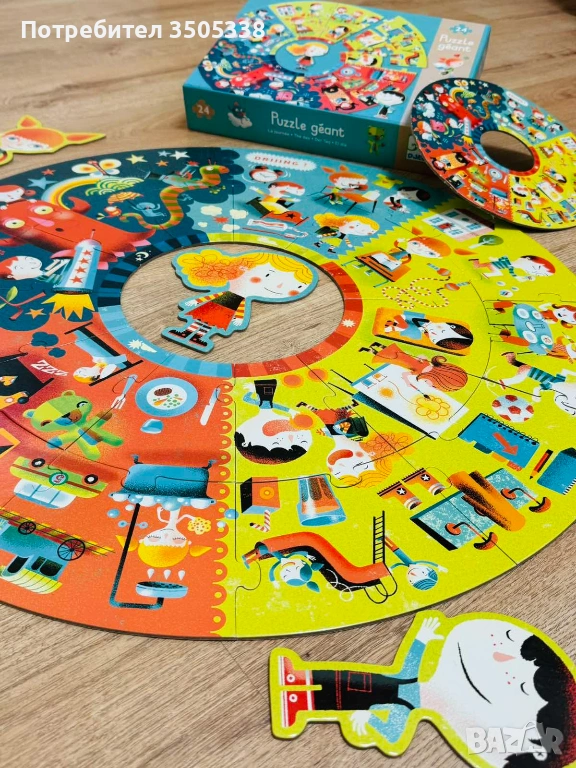Продавам оригинален детски пъзел Djeco Puzzle Géant „La journée / The day“ с 24 големи части.