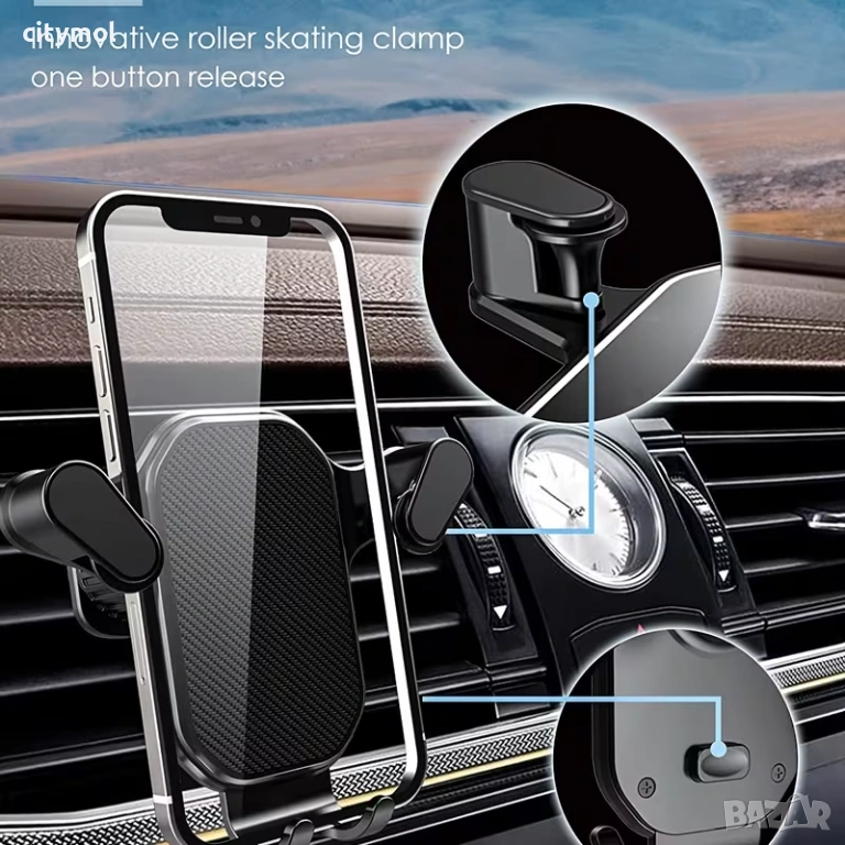 Тази универсална стойка за решетка на автомобил има триточково закрепване на телефона. Благодарение на системата за монтиране на телефона и гумената защита на челюстта, телефонът е плътно закрепен в държача и няма опасност да се разхлаби. Държачът позволява работа с една ръка. От страните на държача има големи бутони за освобождаване на челюстите. При натискане челюстите плавно се освобождават. След като поставите телефона в държача, можете да притиснете челюстите към корпуса на телефона само с една ръка.