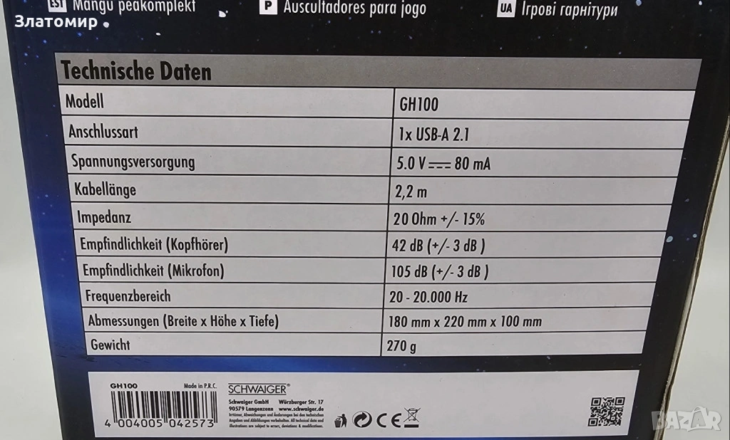 Гейминг слушалки с LED осветление Schwaiger GH100, снимка 1 - Слушалки за компютър - 53114724 Гейминг слушалки с LED осветление Schwaiger GH100, снимка 2 - Слушалки за компютър - 53114724 Гейминг слушалки с LED осветление Schwaiger GH100, снимка 3 - Слушалки за компютър - 53114724 1/3