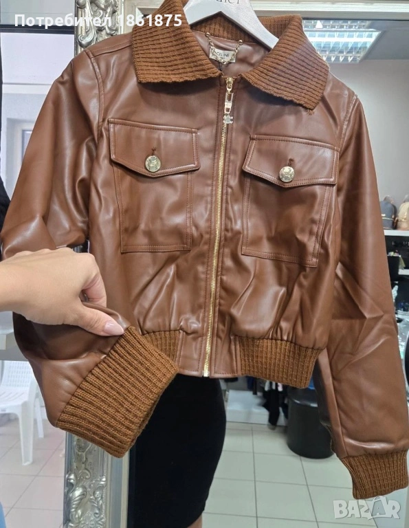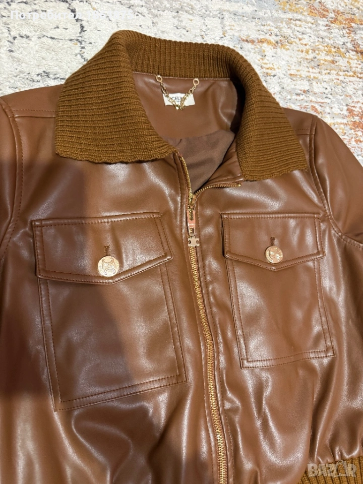 Страхотно ново яке от висококачествена еко кожа CELINE, страхотен кафяв цвят. Размер 40 отговар на М/Л