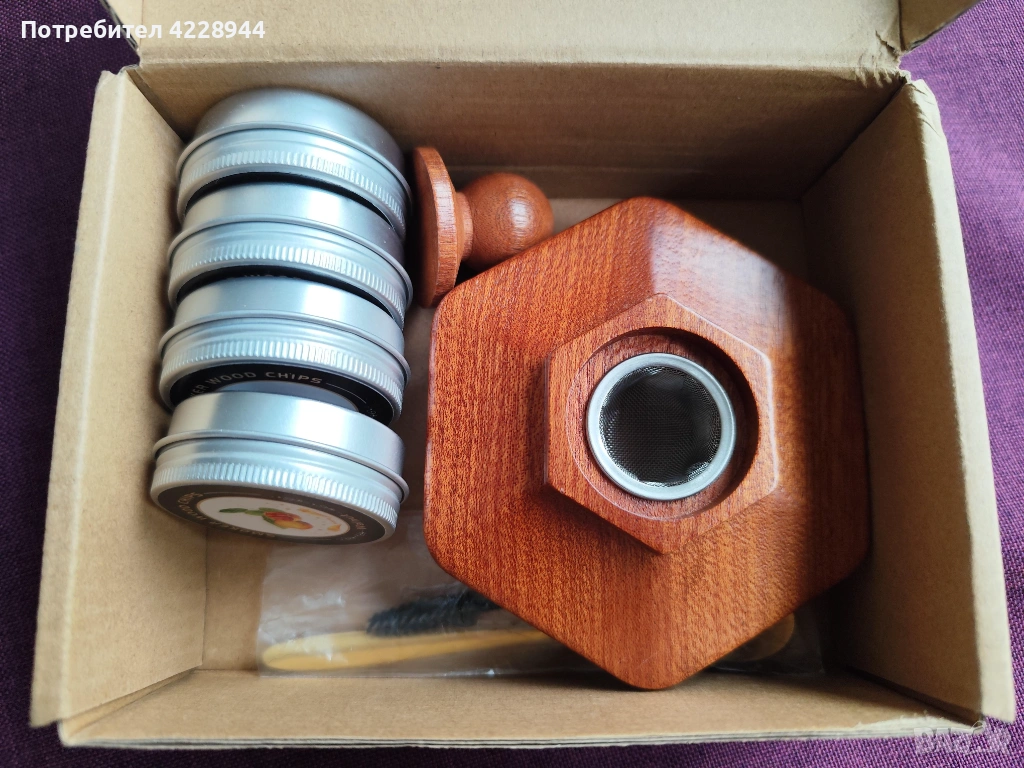 С помощта на четири вида ароматни дървесни стърготини, лъжичка за дозиране и четчица за почистване, лесно ще създадете дим и аромат като от професионален бар – у дома, на празничната маса или с приятели.