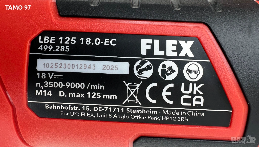 Марка и модел: Flex LBE 125 18.0-EC Напрежение на мотора: 18V